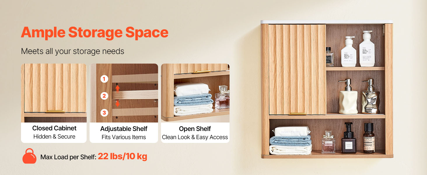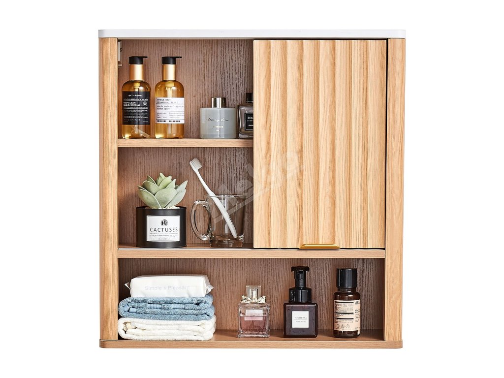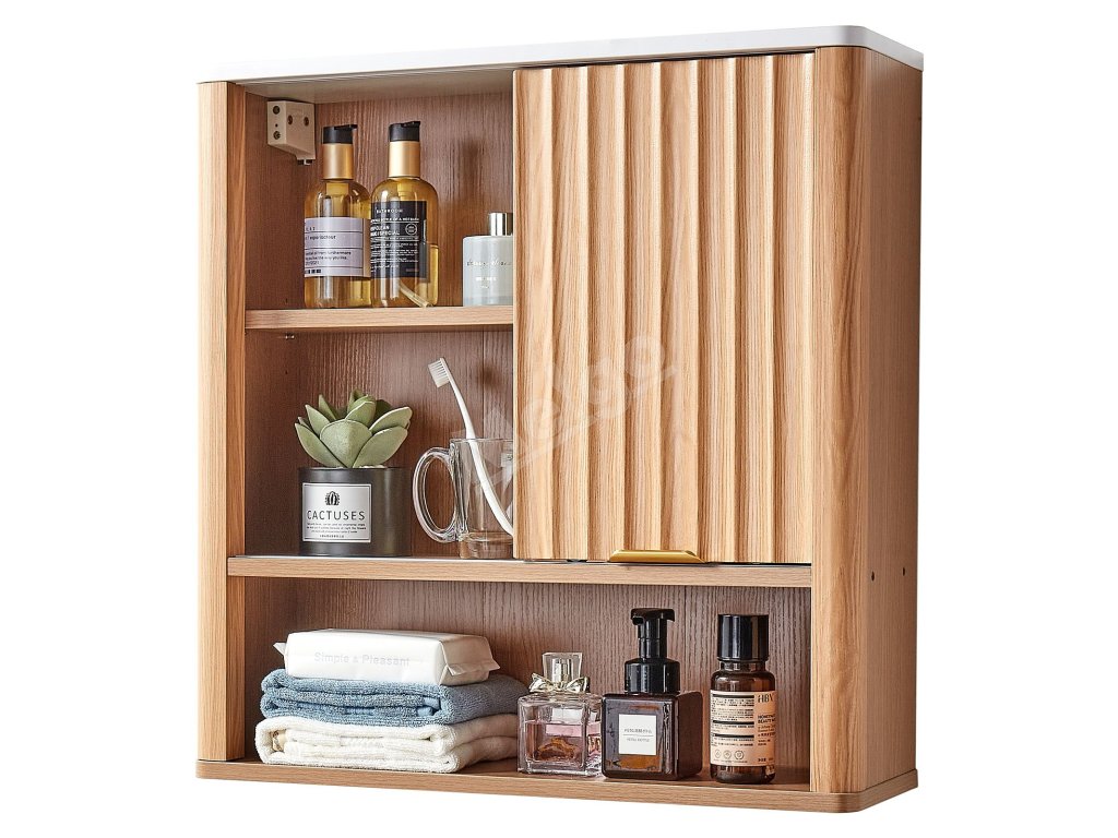 Uzavretá skrinka poskytuje skryté a bezpečné uloženie predmetov. Nastaviteľná polica závesnej kúpeľňovej skrinky sa dokáže flexibilne prispôsobiť rôznym typom predmetov a otvorená polica je prehľadná a krásna na prístup k predmetom dennej potreby. Je robustná a odolná.