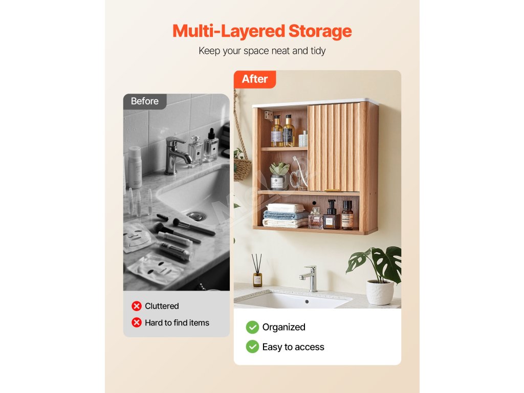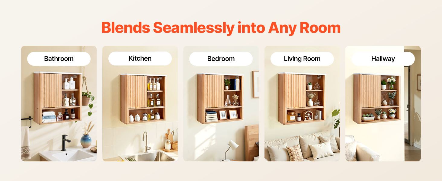 Táto multifunkčná kúpeľňová nástenná skrinka sa bez problémov začlení do kúpeľní, kuchýň, spální, obývacích izieb, chodieb a iných obytných priestorov. Flexibilne sa prispôsobí na ukladanie toaletných potrieb, kuchynských šanónov, organizovanie neporiadku v spálni alebo zdobenie stien obývacej izby.