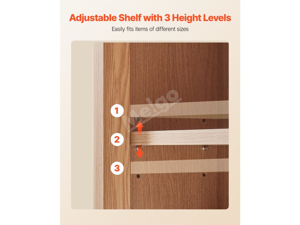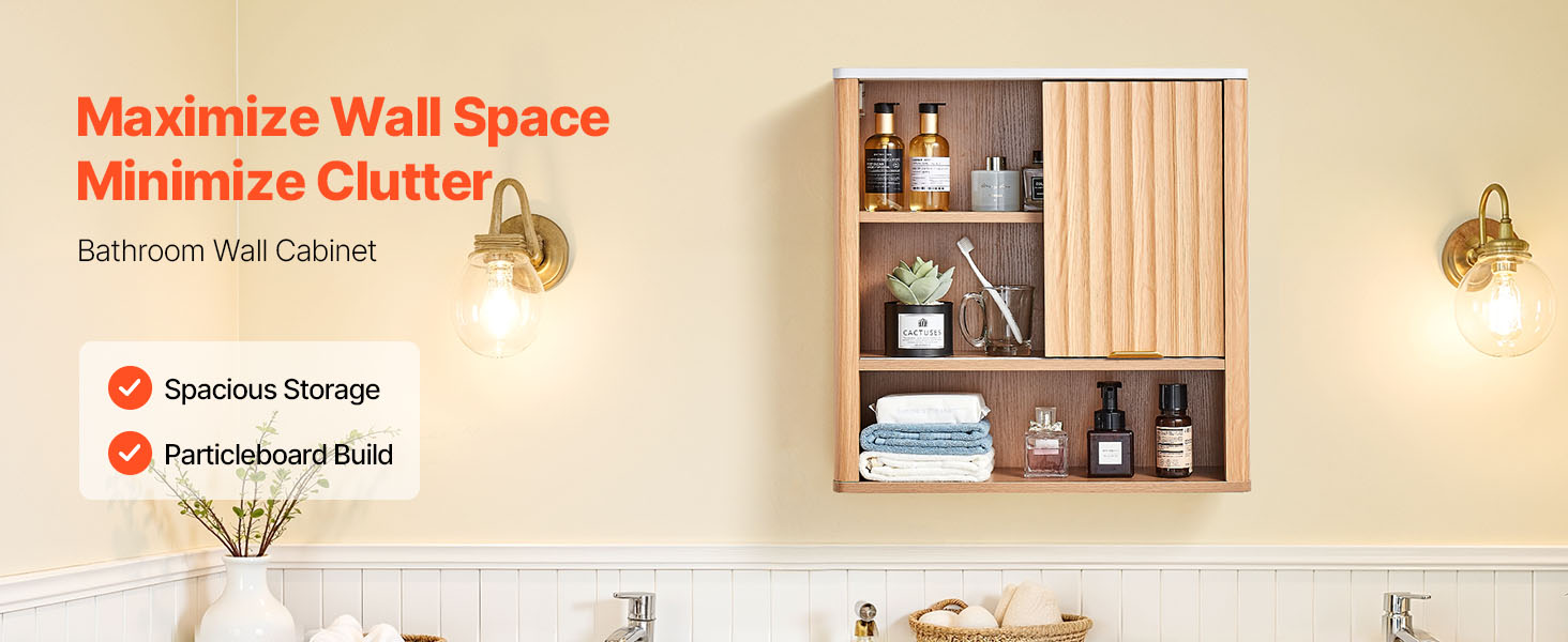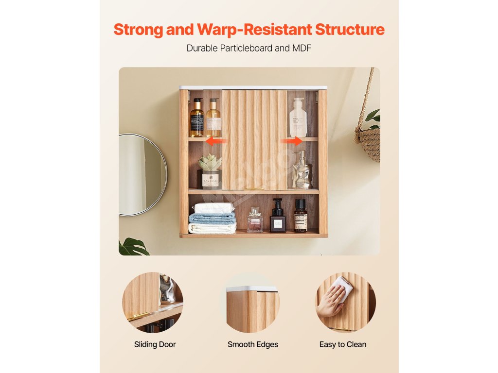 Táto nástenná skrinka do kúpeľne je vyrobená z prvotriednej drevotriesky, je robustná, odolná a atraktívna. Jej priestranný interiér s 3-úrovňovou nastaviteľnou policou maximalizuje vertikálny úložný priestor. Naša kúpeľňová nástenná skrinka spĺňa potreby na uskladnenie rôznych toaletných potrieb a rôznych predmetov.