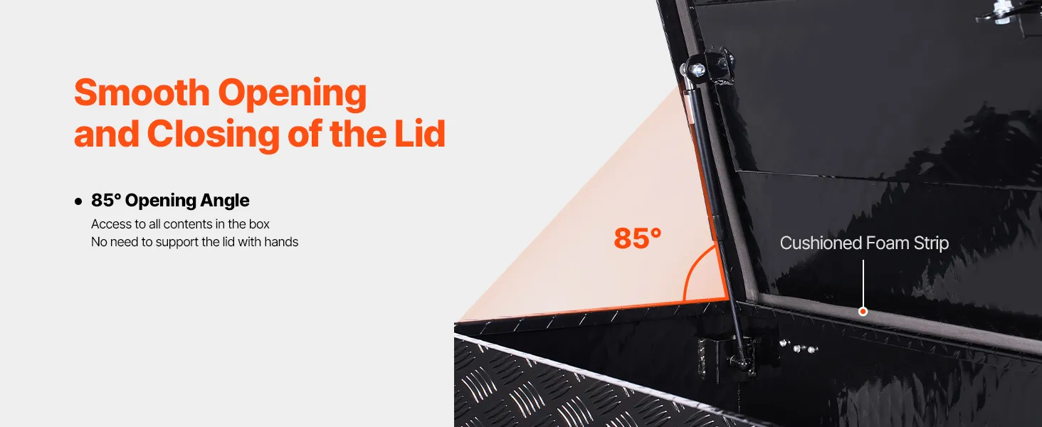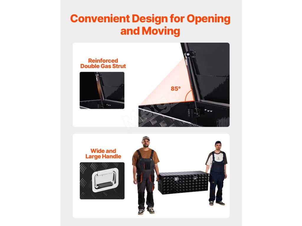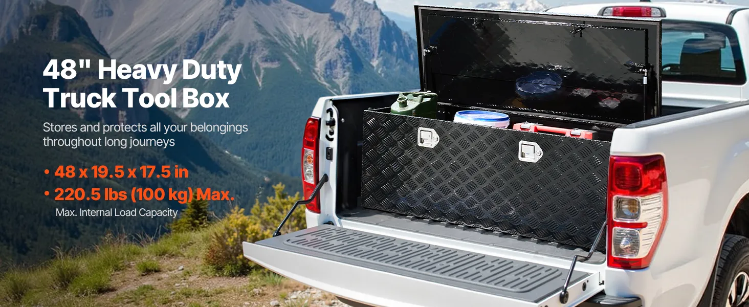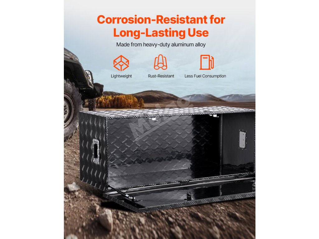 Tento box na náradie do lôžka nákladného vozidla má vnútornú kapacitu na uloženie predmetov s dĺžkou až 46,1" (1170 mm), šírkou 17,5" (445 mm) a výškou 16,7" (424 mm). Unesie hmotnosť 220,5 lbs (100 kg), čo vám umožní uložiť predmety, ako je zdvihák, rôzne náradie vo vozidle, skladacie stany, batožina a ďalšie.