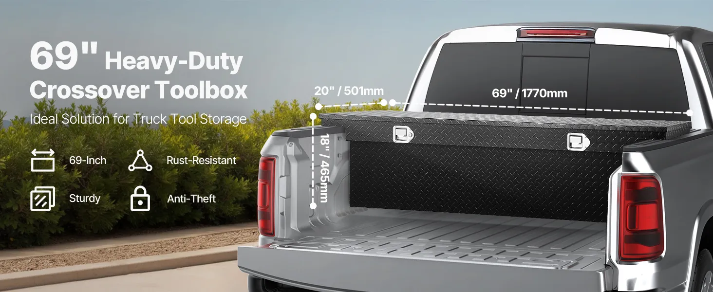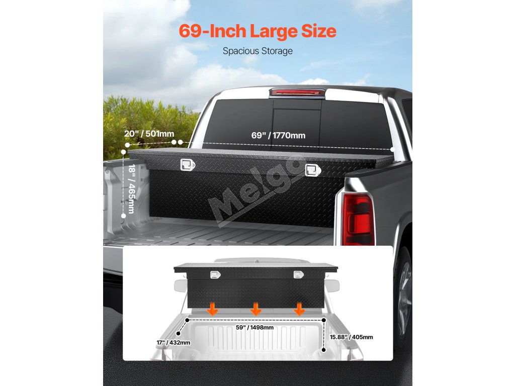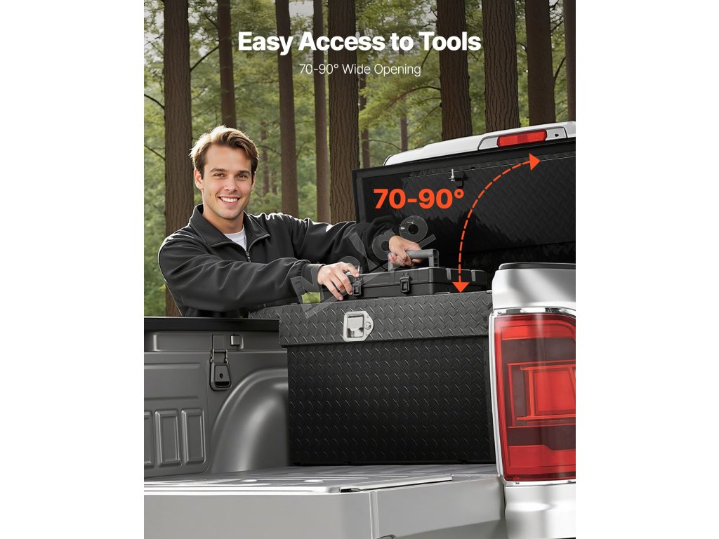 Tento box na náradie pre nákladné vozidlá má veľký otvorený interiér, ktorý ponúka dostatok úložného priestoru na každodenné náradie, stavebné náradie, núdzové vybavenie a príslušenstvo. Ideálny na rôzne vonkajšie použitie.