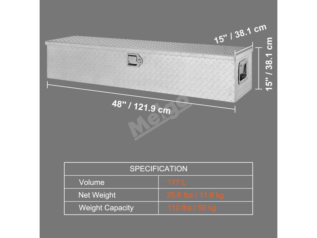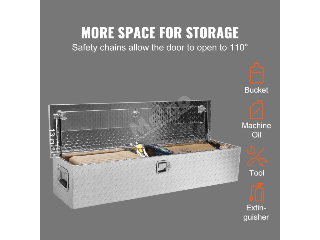 Box na náradie do korby z hliníka, diamantový vzor, 121.9×38.1×38.1 cm