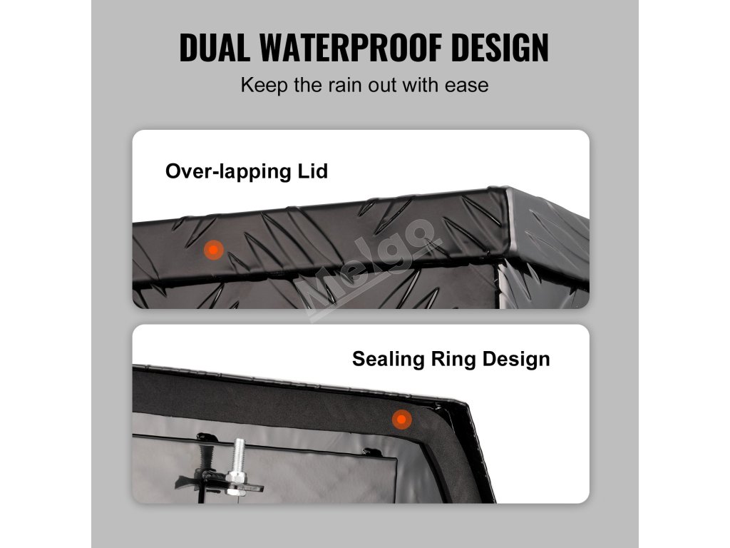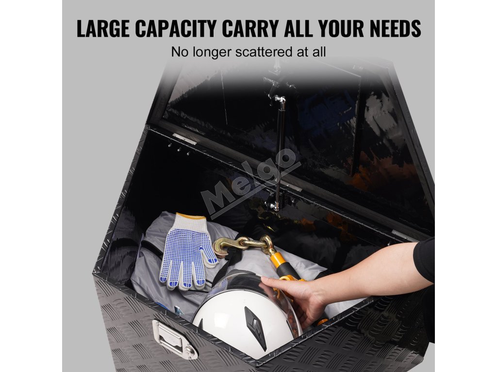 Úložný box na náradie na jazyku s pevným uzamykacím zariadením z nehrdzavejúcej ocele a 2 exkluzívnymi kľúčmi. Či už ho používate vonku alebo na cestách, nebudete sa musieť obávať straty svojich cenných predmetov.