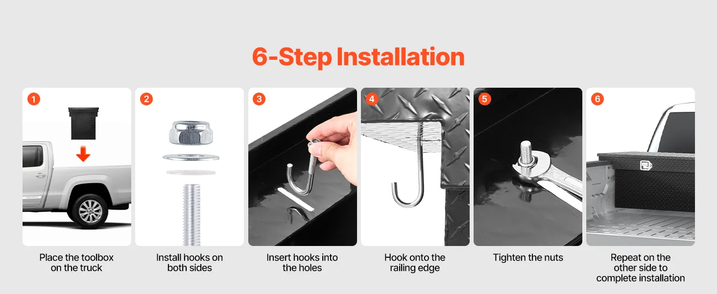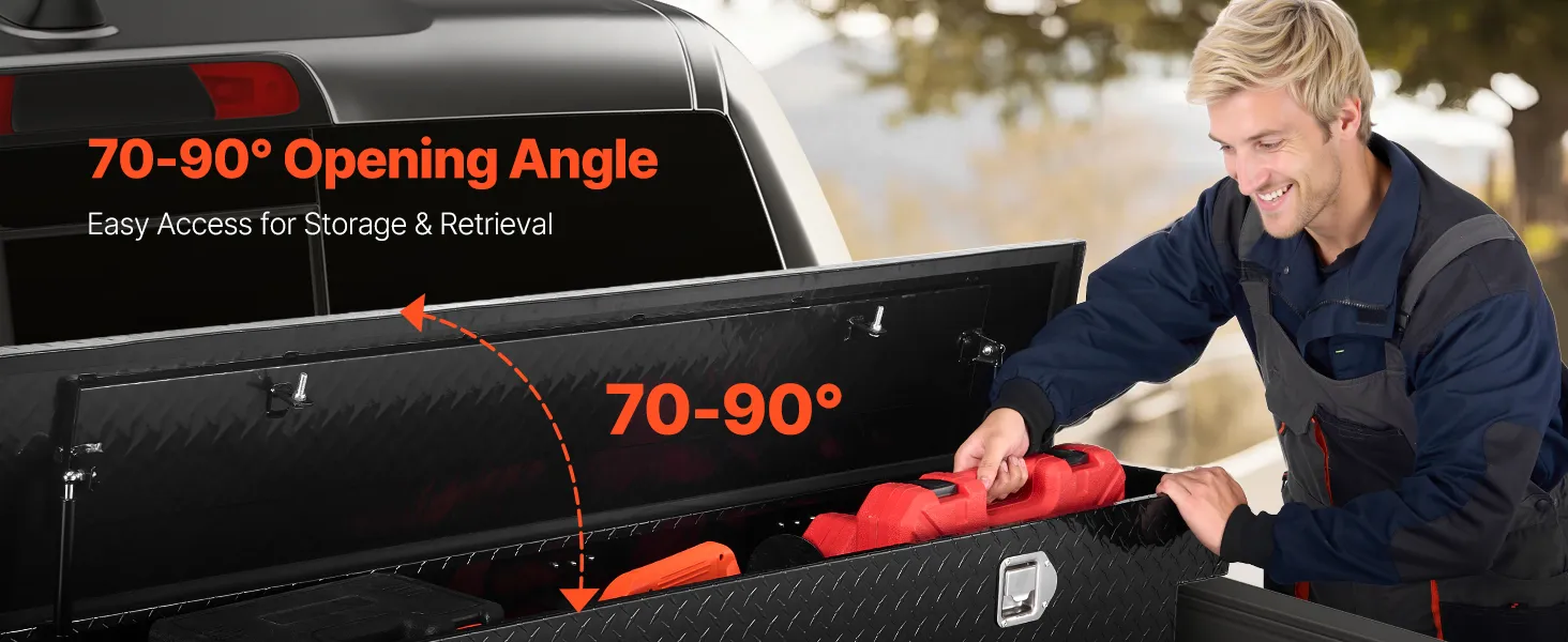 Tento box na náradie pre nákladné vozidlá má veľký otvorený interiér, ktorý ponúka dostatok úložného priestoru na každodenné náradie, stavebné náradie, núdzové vybavenie a príslušenstvo. Ideálny na rôzne vonkajšie použitie.