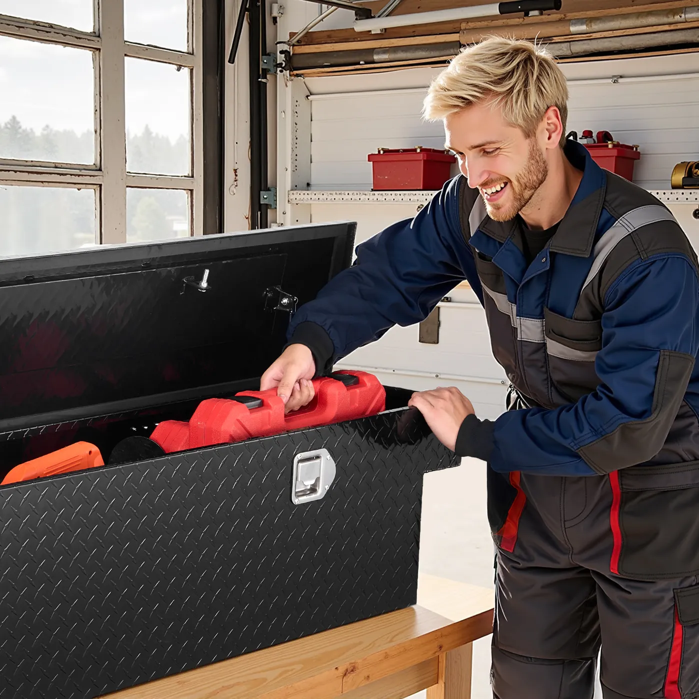 Tento podvozkový box na náradie, vybavený zámkom z nehrdzavejúcej ocele s ťahadlom a prepojeným mechanizmom, umožňuje jednostranné odomykanie, vďaka čomu je každodenný prístup pohodlnejší a efektívnejší.