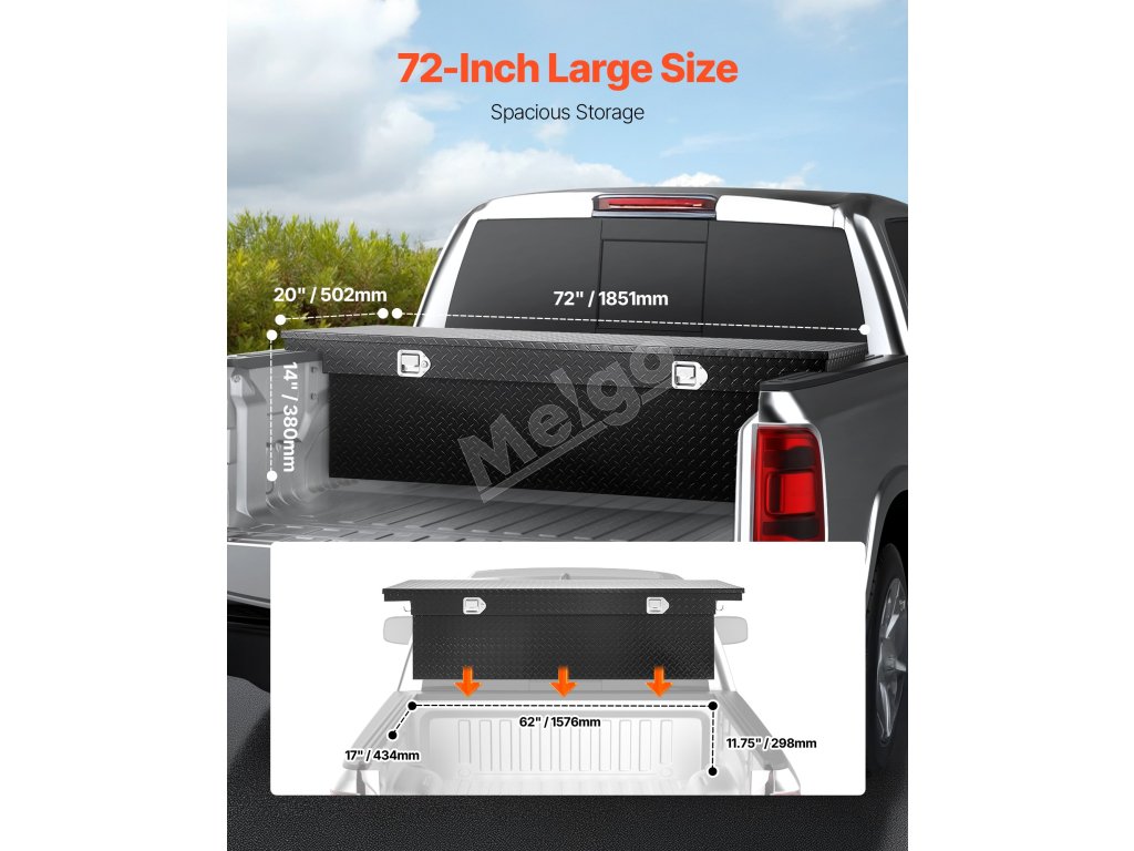 Skrinka na náradie do korby 72×20×14 in hliníková vodotesná so zámkom