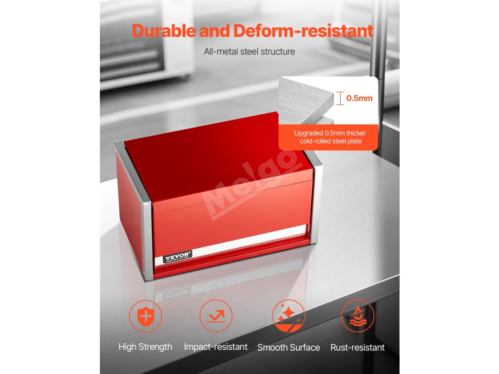 Oceľový box na náradie je navrhnutý s magnetickým horným krytom na jednoduché otváranie a zatváranie. Po zatvorení zostanú zásuvky bezpečne na svojom mieste, čo uľahčuje premiestňovanie boxu na náradie na rôzne miesta.