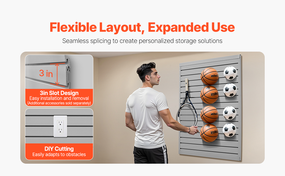 Konštrukcia s 3-palcovou šírkou štrbiny v lamelovom nástennom paneli je kompatibilná s univerzálnymi hákmi, konzolami, policami a iným úložným príslušenstvom, čo uľahčuje pridávanie alebo odoberanie veľkého náradia aj malých dielov.
