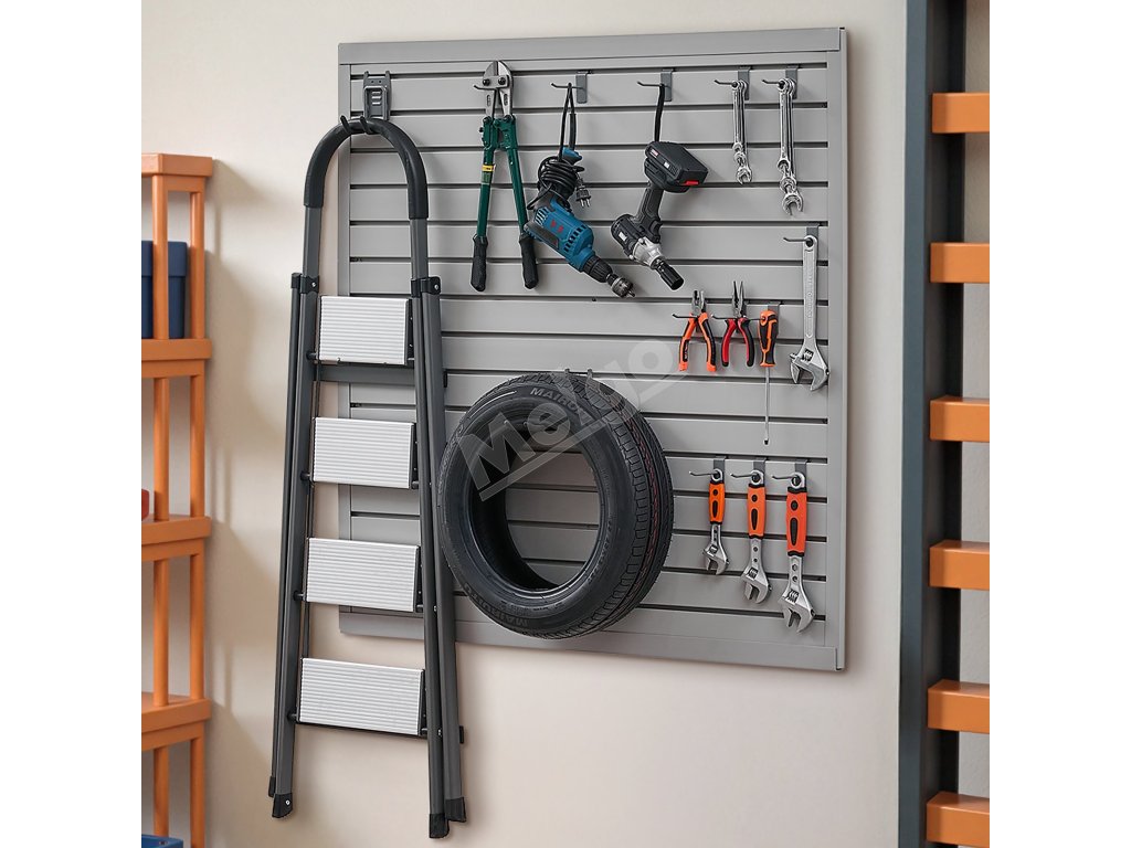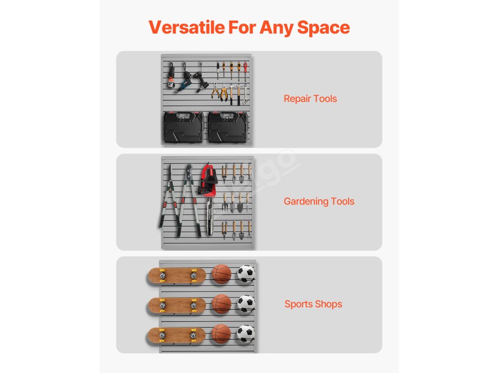 Tento lamelový nástenný panel sa plne hodí do veľkého množstva prostredí vrátane garáží, skladov, záhrad a obchodov, čím sa dosiahne úspora miesta, efektívne skladovanie a štýlové vystavenie. Poskytuje vám upratané miesto!