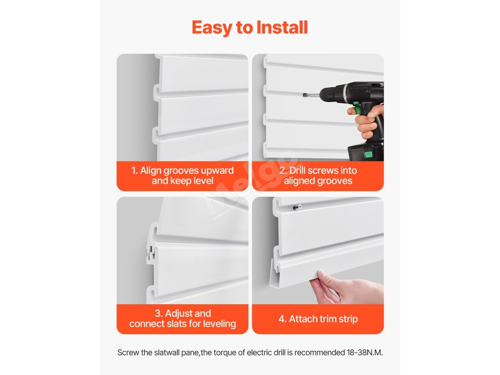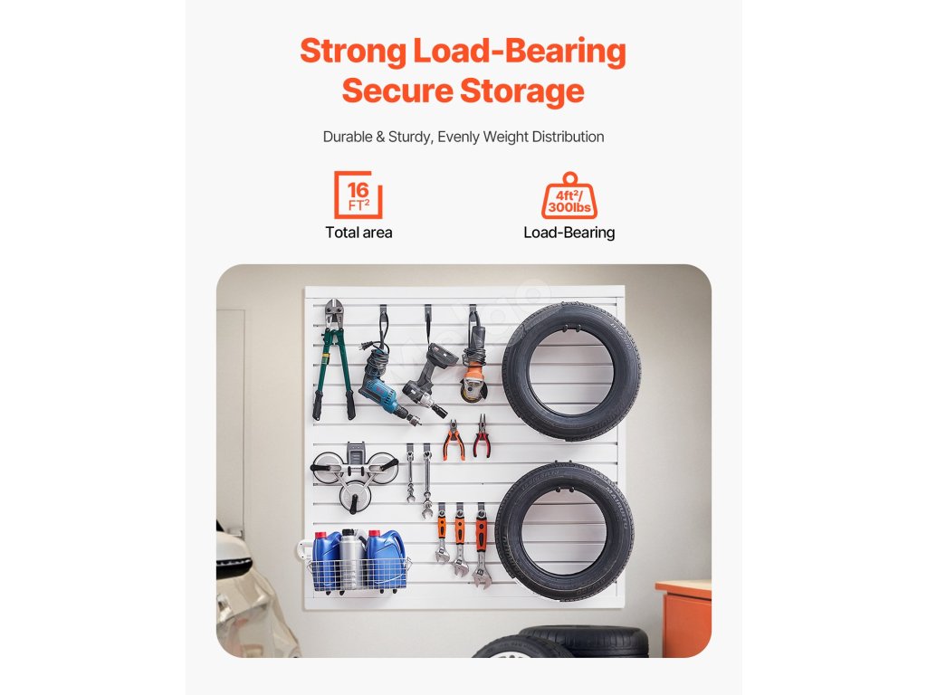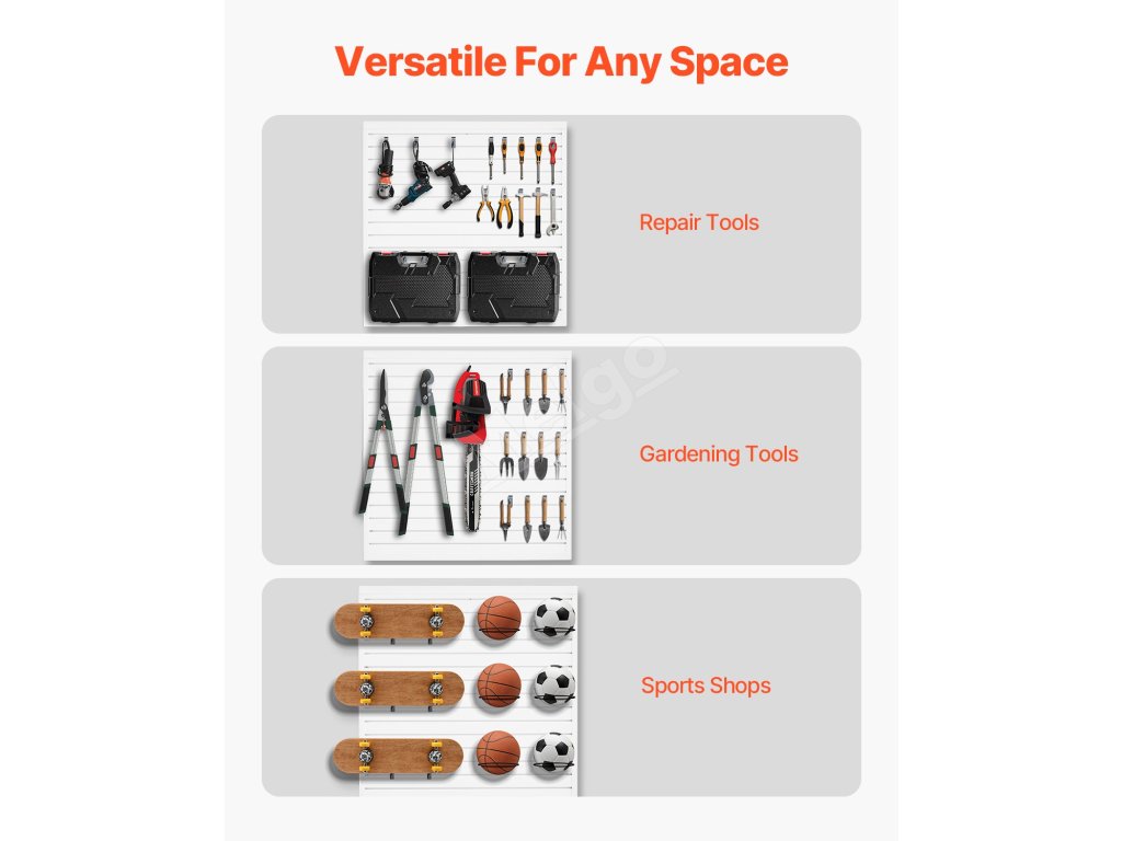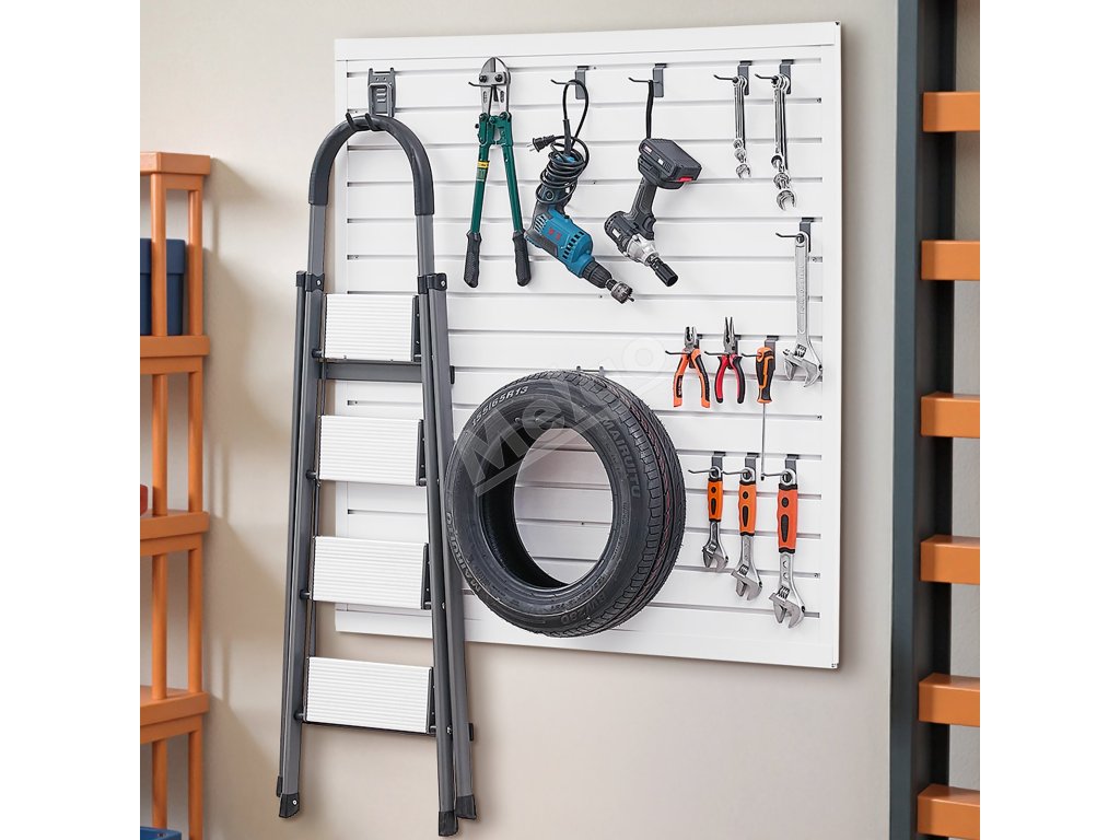 Tento lamelový nástenný panel sa plne hodí do veľkého množstva prostredí vrátane garáží, skladov, záhrad a obchodov, čím sa dosiahne úspora miesta, efektívne skladovanie a štýlové vystavenie. Poskytuje vám upratané miesto!