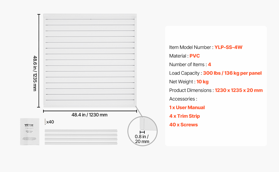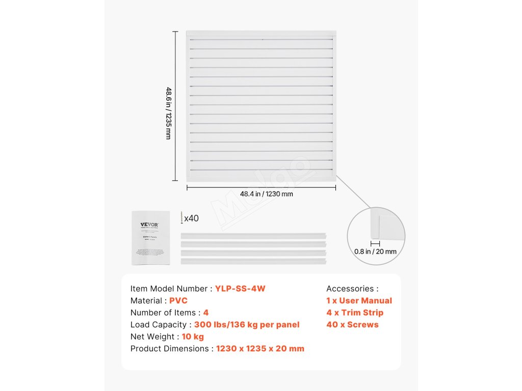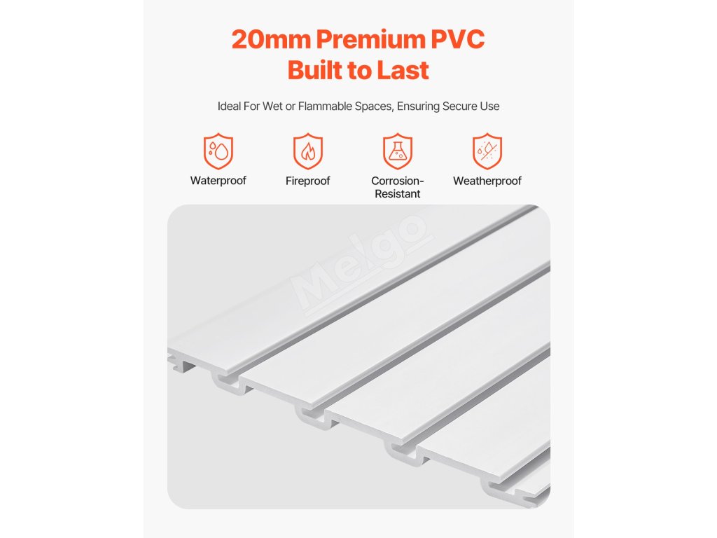 Pvc slatwall panel 4×4 ft biely, modulárny, nastaviteľný, rezateľný