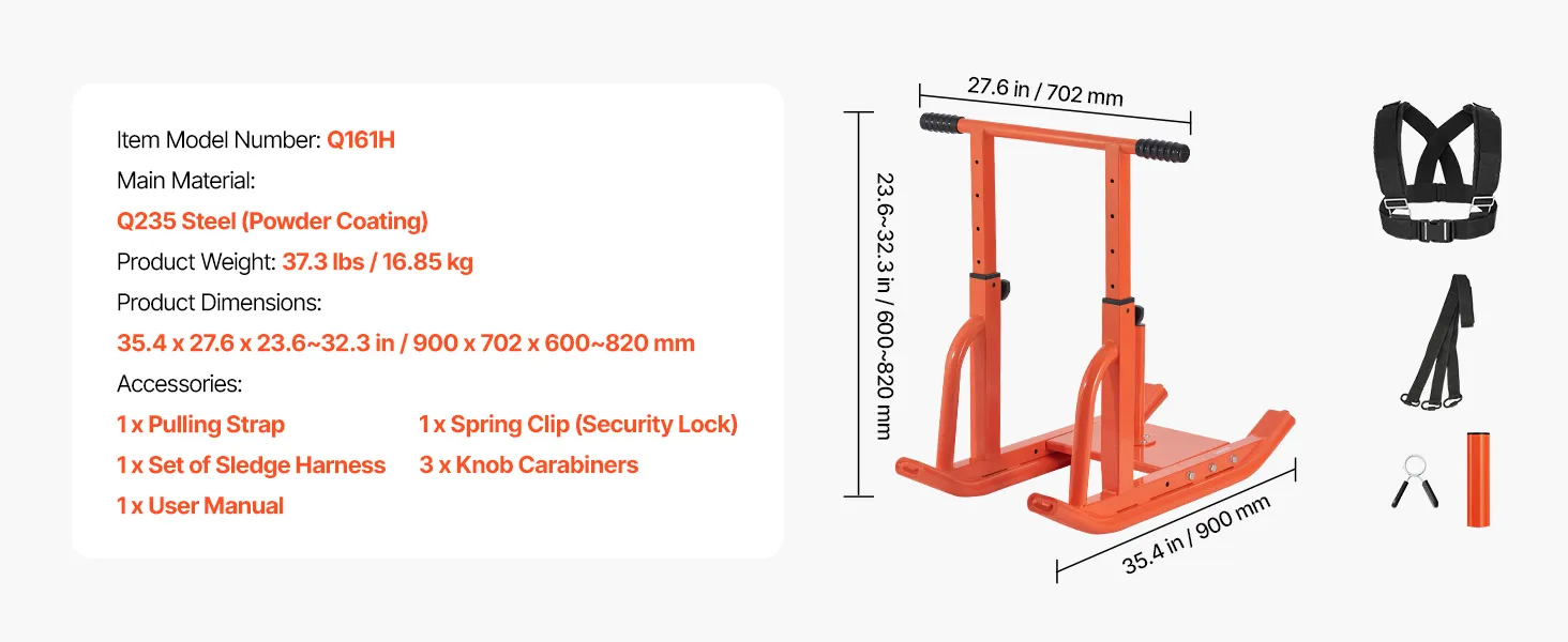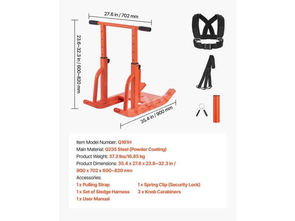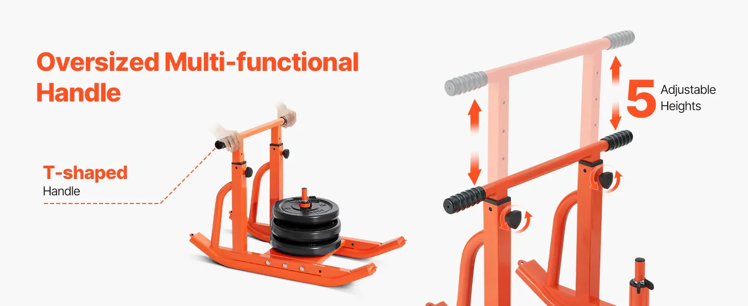 Oceľový záťažový sánkový trenažér, nastaviteľná rukoväť, 25/51 mm