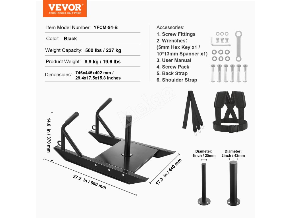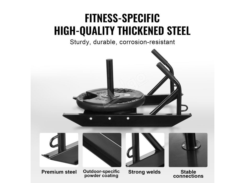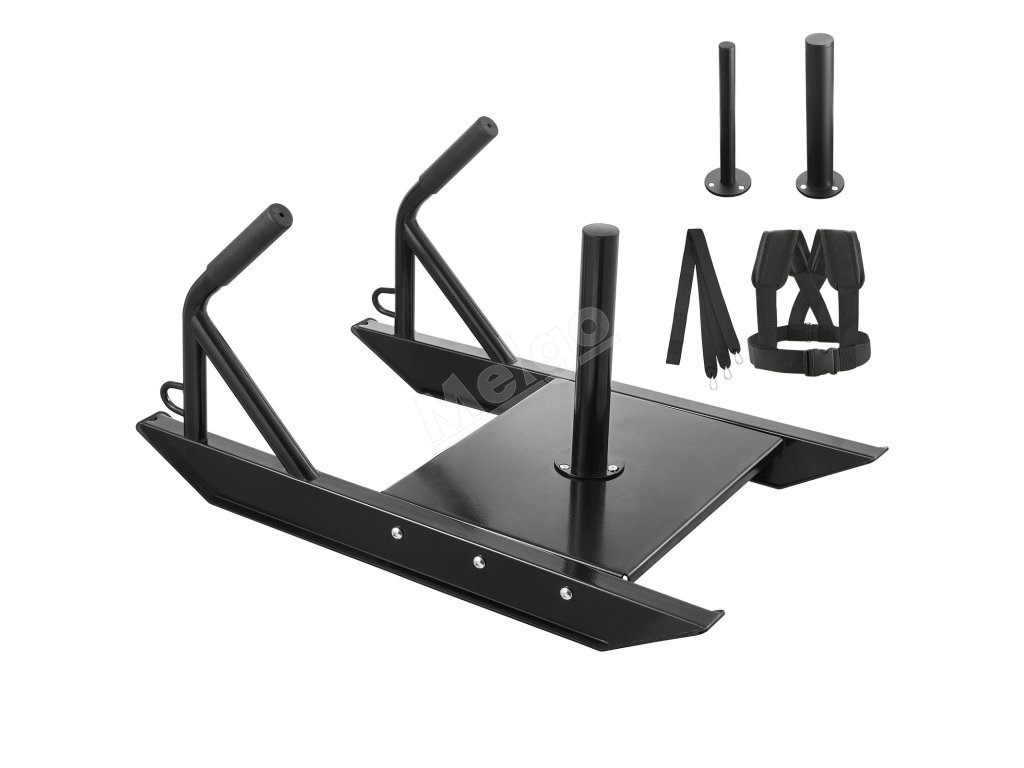 Naše tréningové sane sú vyrobené z vysokokvalitnej ocele s vonkajším práškovým náterom, čo zaručuje trvanlivosť, odolnosť proti korózii a jednoduché čistenie. Hrúbka skrutiek je zväčšená pre stabilnejšie spoje. Úplné zváranie na podporných tyčiach zvyšuje nosnosť.