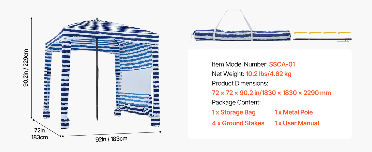 Tento ľahko zostaviteľný stan cabana sa dá ľahko zložiť a uložiť do priloženej prepravnej tašky, vďaka čomu ho možno jednoducho prepraviť na pláž, do kempu alebo na akékoľvek iné miesto v prírode.