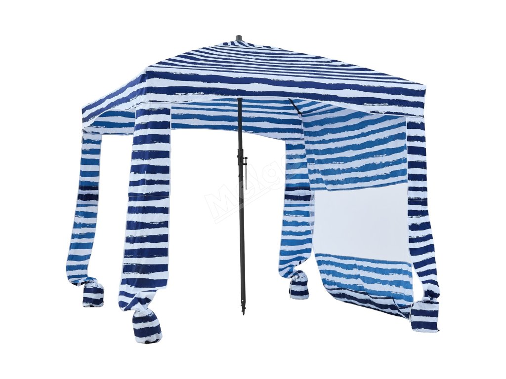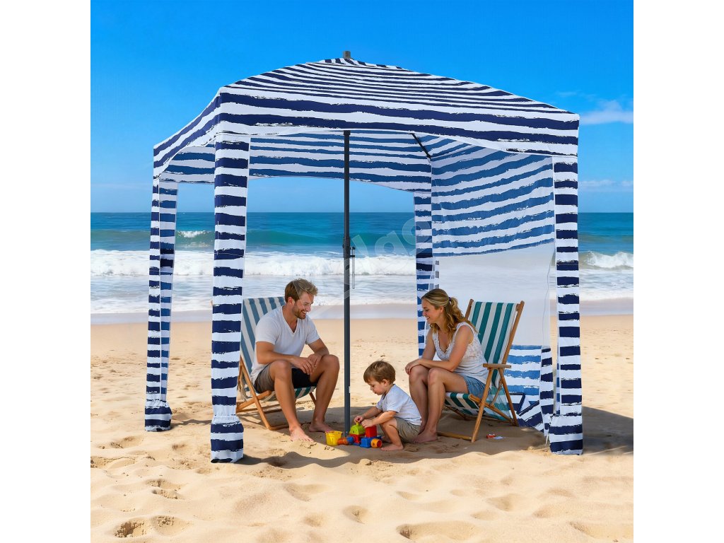 Plážová kabína 1.83 × 1.83 m upf 50+ bočná stena s vreckami na piesok