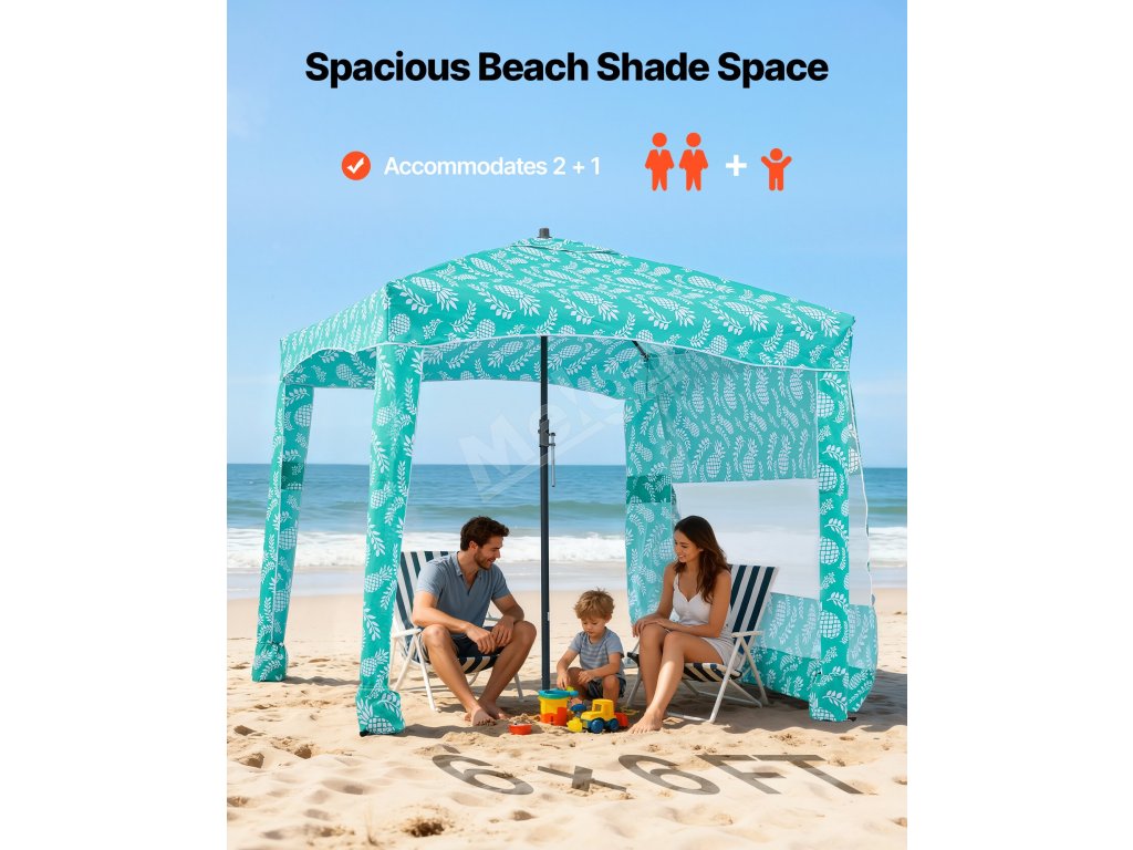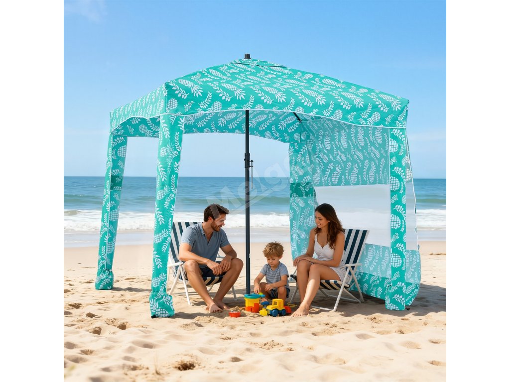 Plážový stan 1.83×1.83 m, s bočnou stenou, UPF 50+, vrecká na piesok