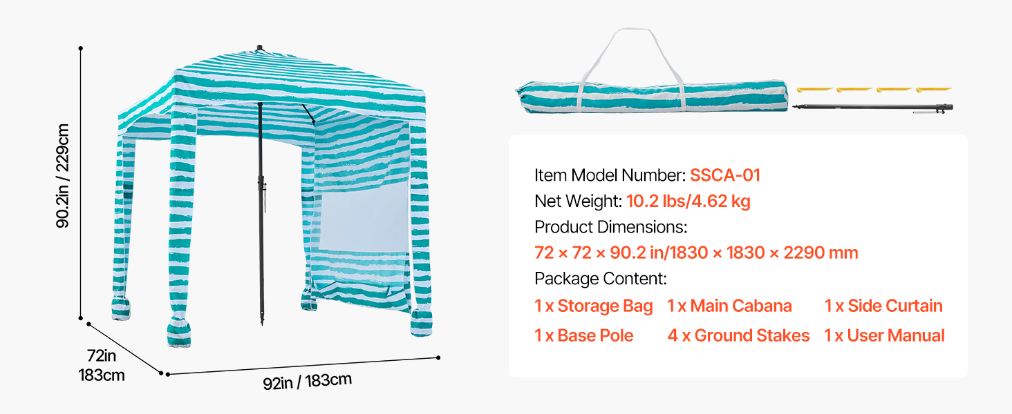 Tento ľahko zostaviteľný stan cabana sa dá ľahko zložiť a uložiť do priloženej prepravnej tašky, vďaka čomu ho možno jednoducho prepraviť na pláž, do kempu alebo na akékoľvek iné miesto v prírode.