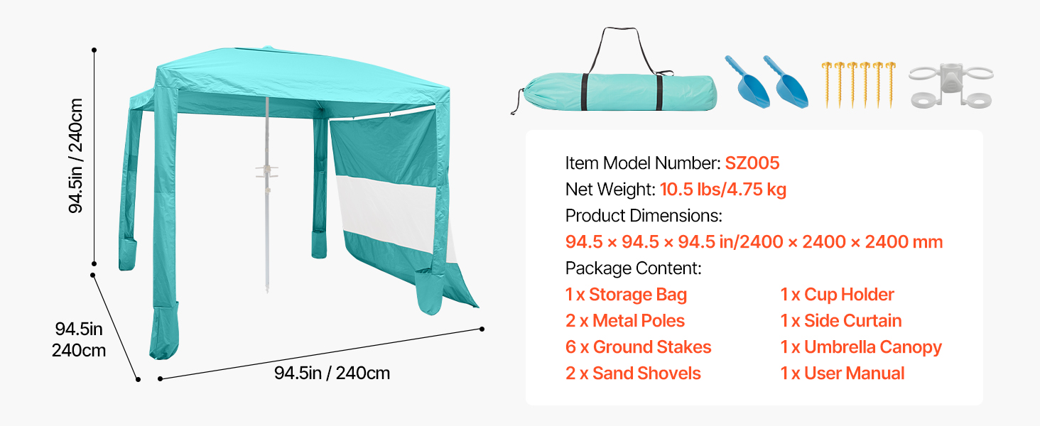 Táto veľká plážová kabína, ktorá poskytuje ochranu pred slnkom až UPF 50+, sa dodáva s odnímateľným bočným závesom. Pripevnite ju pre maximálny tieň alebo ju odpojte, aby ste si mohli užívať otvorený, dobre vetraný priestor.