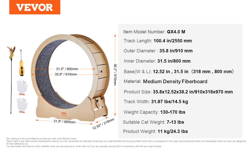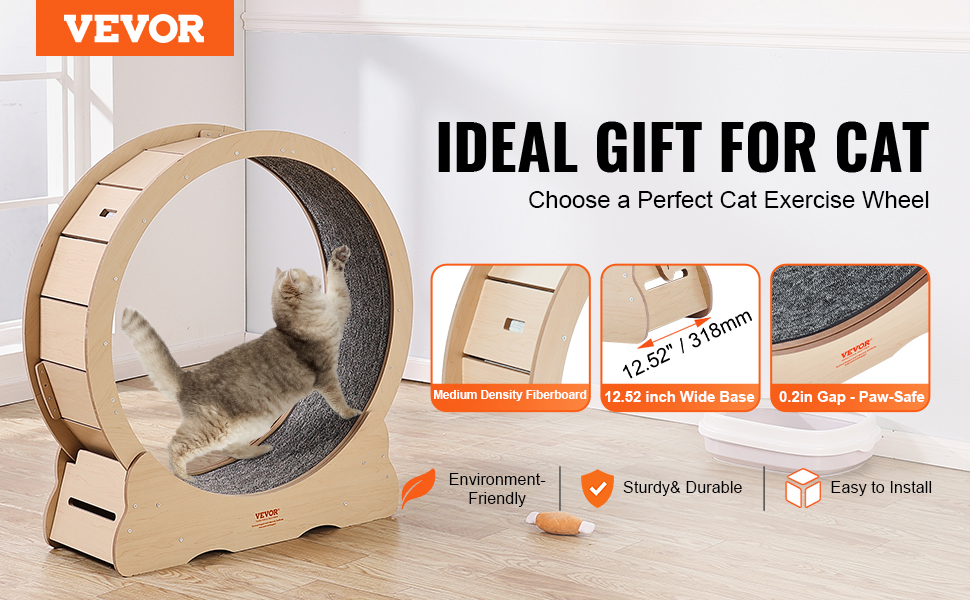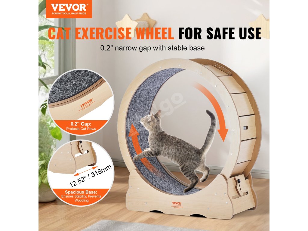 Priestranný vnútorný priemer poskytuje vašej chlpatej mačke dostatok priestoru na voľný a pohodlný pohyb, vhodný pre mačky všetkých veľkostí. Či už sú veľké alebo malé, všetky ho môžu bez problémov využívať na behanie a hranie.