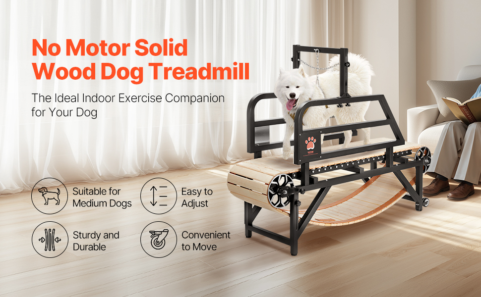 Tento bežecký pás pre psov vyrobený z uhlíkovej ocele s drevenou dráhou a hliníkovými valcami ponúka pohodlné cvičenie bez elektrickej energie. Medzi funkcie patrí nastaviteľné upevnenie vodítka a nastavenie sklonu, vďaka čomu je ideálny pre stredne veľké až veľké psy do 330 kg. Ideálny na cvičenie v interiéri za každého počasia.