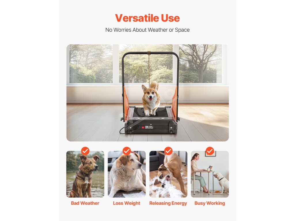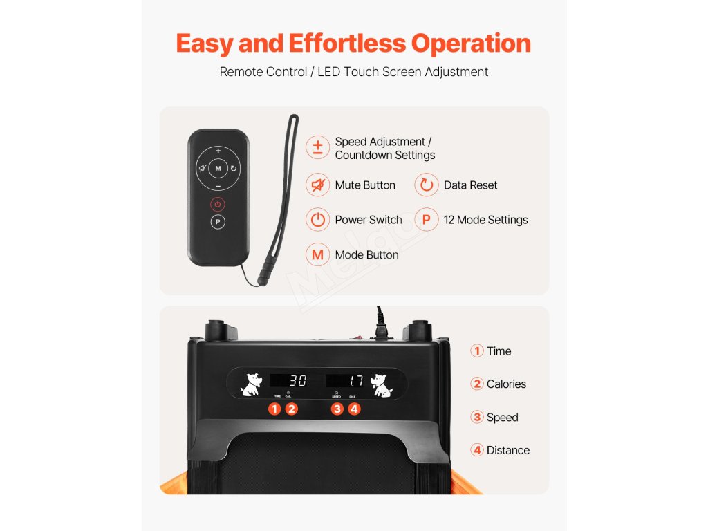 Tento bežecký pás s výkonným motorom s výkonom 1,5 HP ponúka 12 tréningových režimov. Jednoducho si nastavte rýchlosť pomocou diaľkového ovládania a LCD displeja. Textilná dráha Oxford a robustný rám z uhlíkovej ocele zaisťujú stabilitu. Je vhodný pre psov do hmotnosti 200 kg a umožňuje cvičenie v interiéri bez ohľadu na počasie.