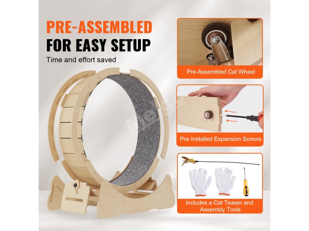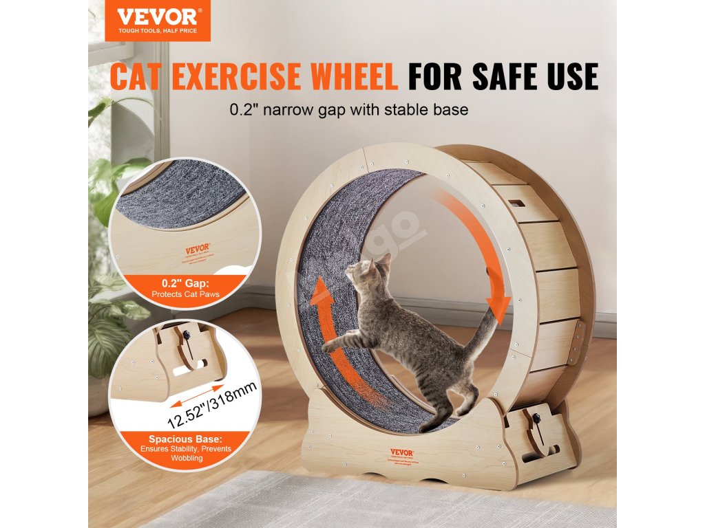 Priestranný vnútorný priemer poskytuje vašej chlpatej mačke dostatok priestoru na voľný a pohodlný pohyb, vhodný pre mačky všetkých veľkostí. Či už sú veľké alebo malé, všetky ho môžu bez problémov využívať na behanie a hranie.