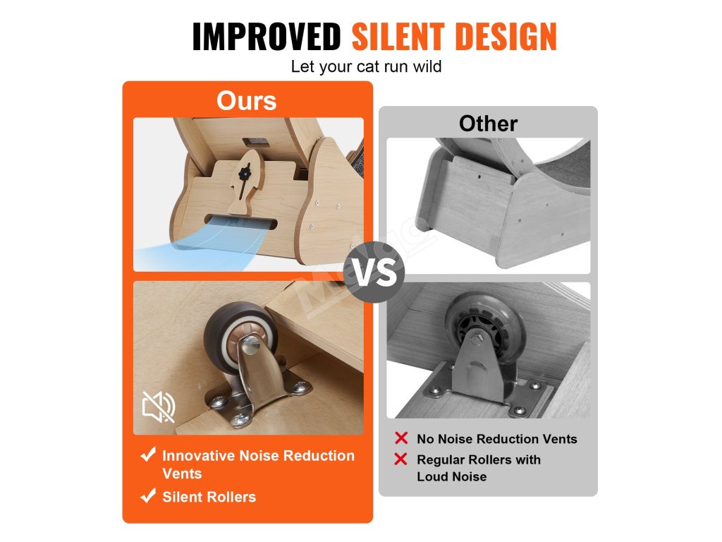 Vďaka tichému koliesku a otvorom znižujúcim hluk dokáže naše koliesko pre mačky znížiť hluk o 10 - 20 %, čím vytvára pokojné a príjemné prostredie na cvičenie pre vášho domáceho miláčika. To vám umožní harmonické spolužitie s vaším domácim miláčikom a rodinou.