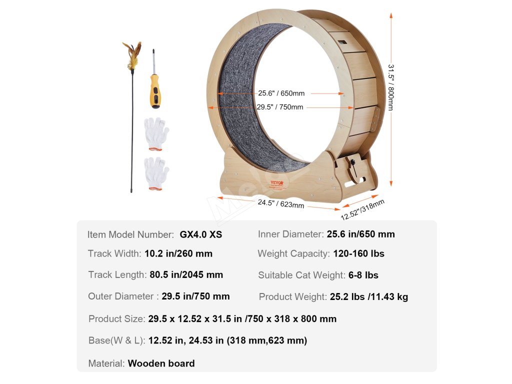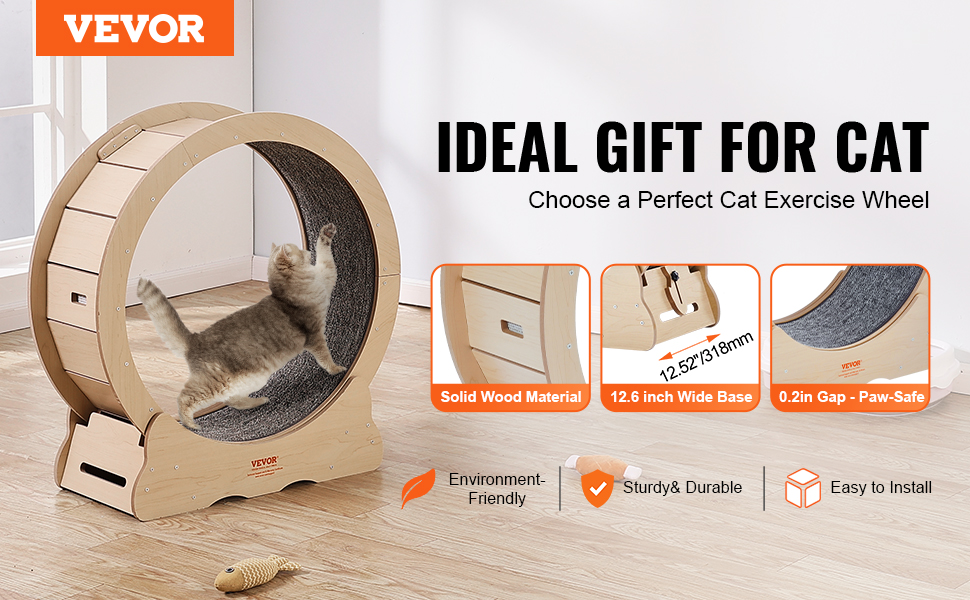 Toto koliesko na cvičenie mačiek je vyrobené z masívneho dreva, čo zaručuje jeho odolnosť. Vďaka priestrannej 12,52-palcovej základni poskytuje vašej mačke stabilný priestor na cvičenie. Jedinečná konštrukcia s medzerou 0,2"/6 mm zaisťuje bezpečnosť a umožňuje vášmu mačaciemu spoločníkovi voľne behať na koliesku.