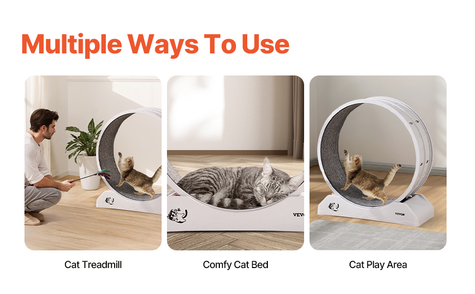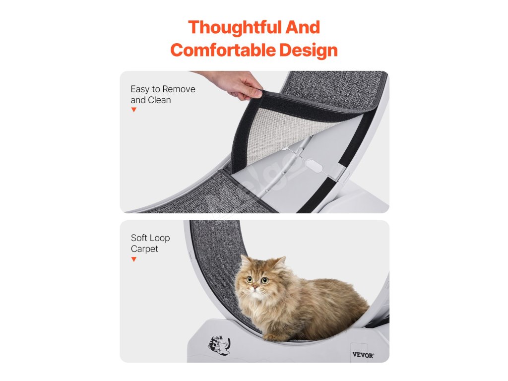 Tento robustný, ale ľahký bežecký pás pre mačky je určený pre hravé domáce zvieratá a je vybavený tichými valčekmi na pohodlný beh. Jeho priestranný interiér je vhodný pre mačky všetkých veľkostí, zatiaľ čo vďaka ľahko čistiteľným materiálom je údržba hračkou. Je dostatočne univerzálny na to, aby slúžil ako útulný pelech alebo zábavná zóna.
