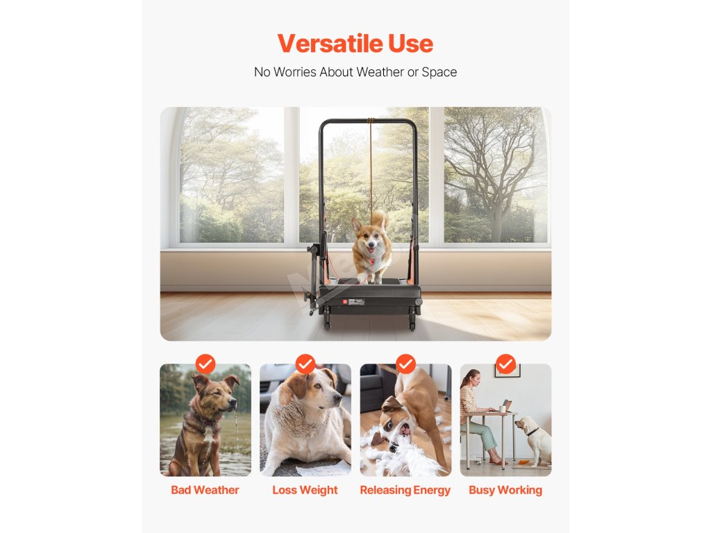 Bežecký pás je vybavený nastaviteľnými nohami na úpravu sklonu, čo umožňuje kontrolovať intenzitu cvičenia vášho psa a účinne podporovať odbúravanie tukov.