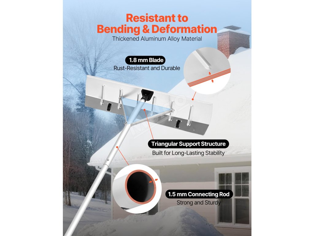 Vďaka nastaviteľnej dĺžke vám tieto strešné hrable na sneh umožnia ľahko odstrániť sneh nahromadený na strechách bez nebezpečenstva lezenia po rebríkoch. Dodáva sa s hladkými valcami, ktoré zabraňujú poškriabaniu strechy, a protišmyková rukoväť zaisťuje bezpečné uchopenie v klzkých podmienkach.