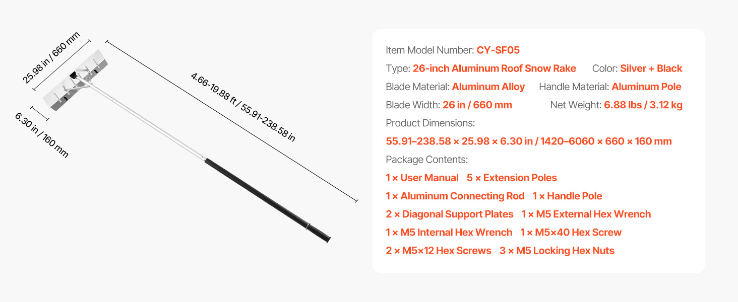 | Typ | 26-palcové hliníkové strešné hrablo na sneh |