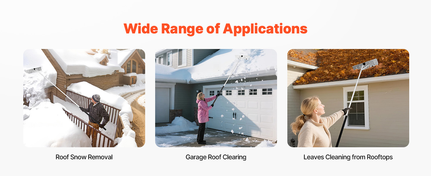Naše strešné hrable sú viacúčelovým nástrojom, ktorý efektívne zvláda rôzne scenáre. Či už ide o sneh alebo spadnuté lístie na dome, strechy garáží, efektívne ich vyčistí, vďaka čomu je zimný život bezproblémovejší a uvoľnenejší.