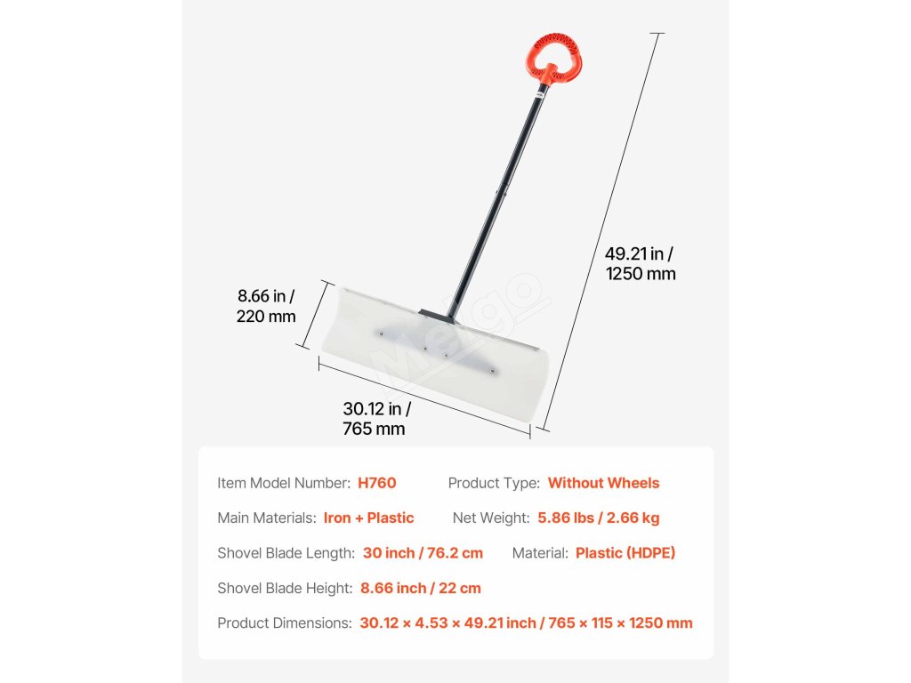 Táto 30-palcová lopata na sneh odstraňuje veľké plochy snehu jedným prejazdom. Je vyrobená z HDPE s hladkým povrchom, ktorý zabraňuje hromadeniu snehu. Vystužená kovovou hranou, ktorá zabraňuje deformácii. Protišmyková rukoväť so závitom vám pohodlne padne do ruky, čím sa znižuje únava pri dlhšom používaní.