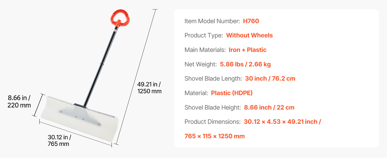 | Dĺžka čepele lopaty | 30 palcov / 76,2 cm |