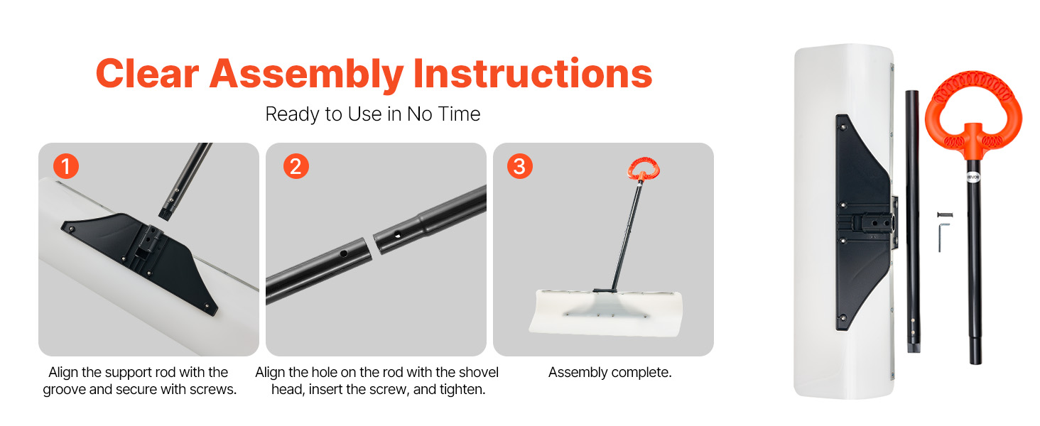 Vďaka jasným a jednoduchým montážnym návodom môžete túto plastovú lopatu na sneh ľahko zostaviť bez potreby zložitých nástrojov alebo krokov. Je ideálna pre začiatočníkov aj profesionálov a môžete sa okamžite pustiť do odstraňovania snehu.