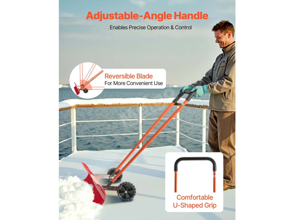 Táto lopata na sneh je vybavená 37,8-palcovou čepeľou, ktorá odstráni veľké plochy snehu na jeden prechod. Vďaka 72° dvojúhlovej čepeli sa táto lopata na sneh prispôsobí rôznym snehovým podmienkam. Čepeľ je odolná s hladkým povrchom na jednoduché čistenie. Nastaviteľná 90° rukoväť umožňuje prispôsobiť uhol.