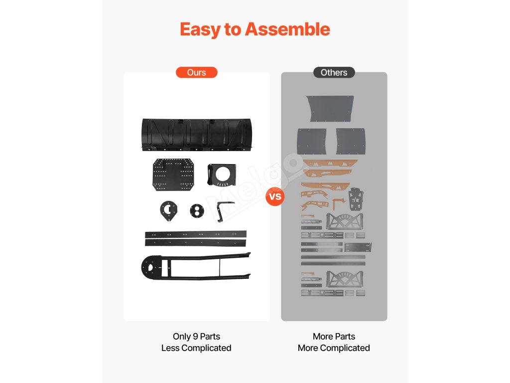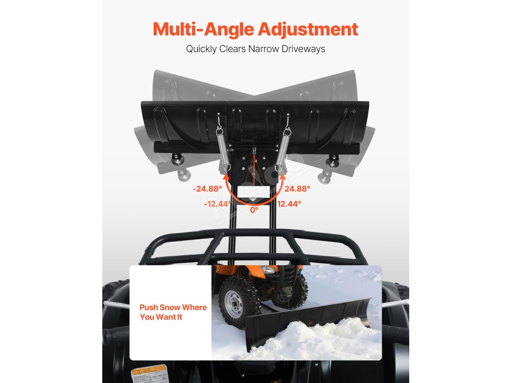 Naša snehová radlica je navrhnutá tak, aby sa ľahko prispôsobila väčšine modelov ATV a UTV. Opierka s viacerými drážkami ponúka 3 flexibilné možnosti montáže, čím zabezpečuje širokú kompatibilitu s vozidlami. Vďaka 5-polohovému nastaveniu uhla vľavo-vpravo (±24,88°) a 4-úrovňovému vertikálnemu ovládaniu výšky sa prispôsobí väčšine scenárov čistenia snehu.