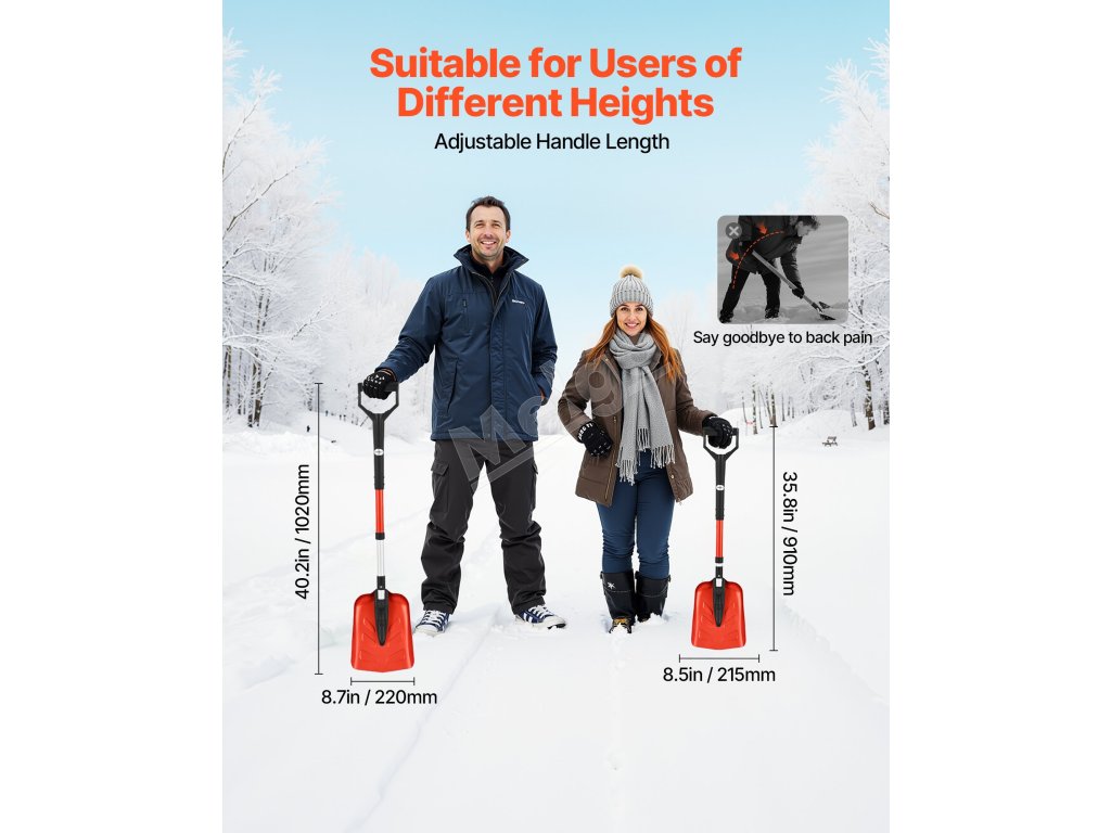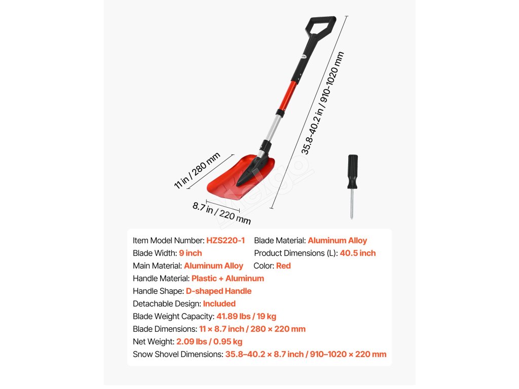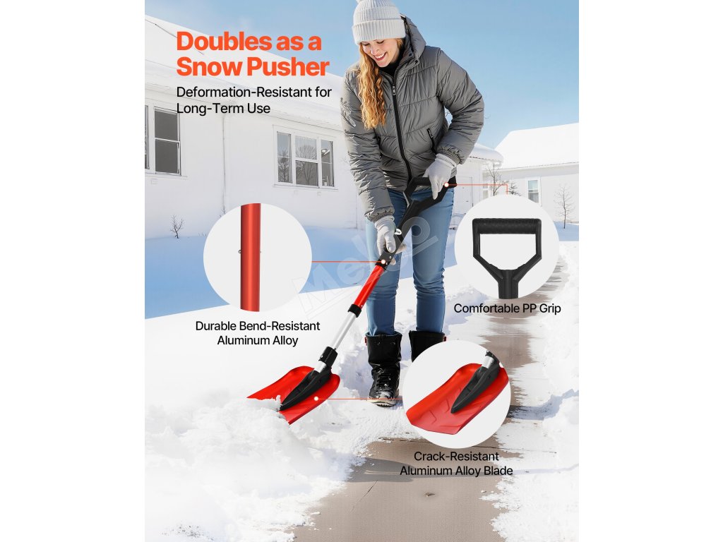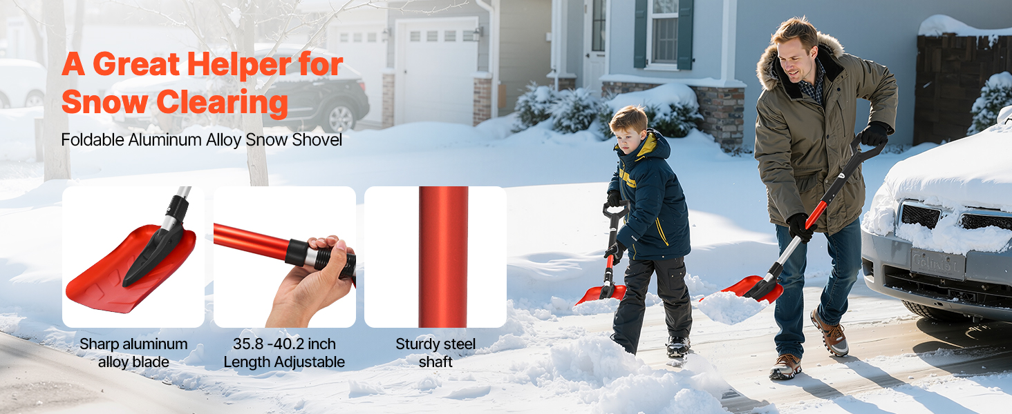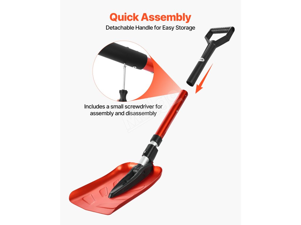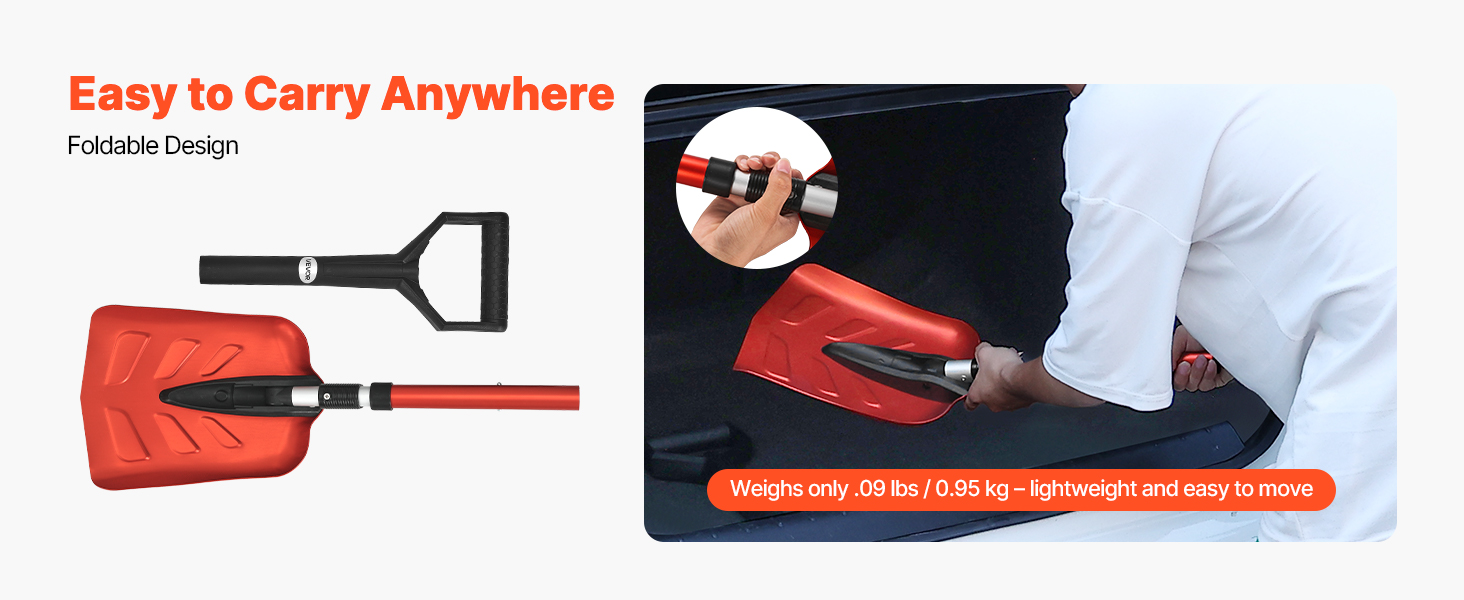 Táto nastaviteľná lopata na sneh sa ľahko zmestí do kufra auta, kôlne na náradie alebo na verandu bez toho, aby zaberala miesto. Pri dochádzaní do práce alebo na výlety, s hmotnosťou len 2,09 kg, ju môžete prevážať v aute a poslúži vám ako spoločník na cesty pri nečakanom snežení.