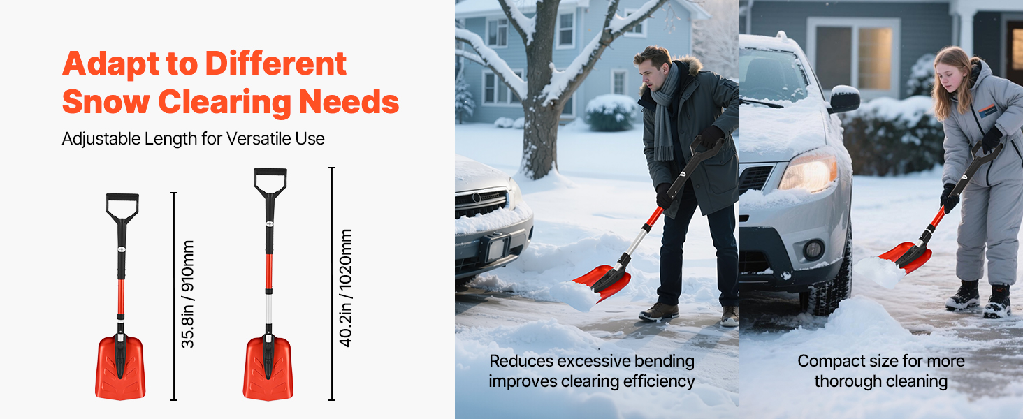 Lopata na ťažký sneh je vybavená výsuvnou hriadeľou na jednoduché nastavenie podľa rôznych potrieb čistenia, zvládne čistenie snehu pod autom, okolo pneumatík alebo snehu na chodníkoch. Táto konštrukcia znižuje únavu z ohýbania a uľahčuje a spríjemňuje zimné odhŕňanie.