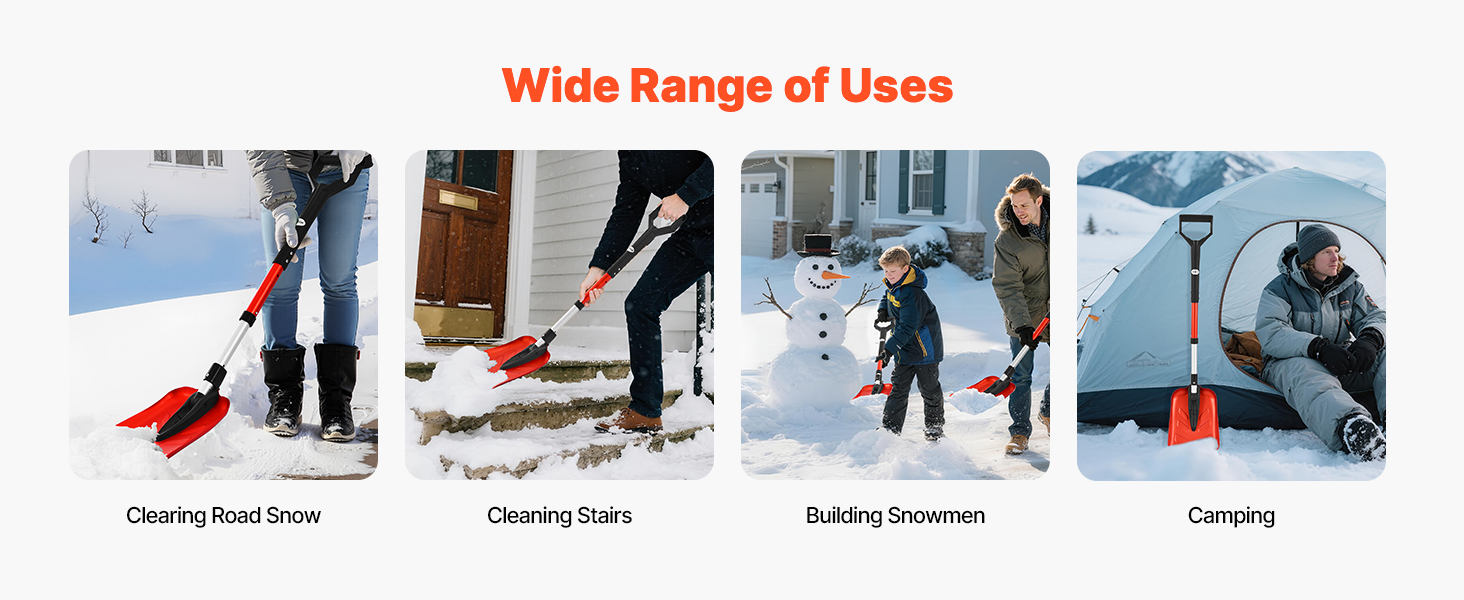 Táto lopata na sneh pre seniorov zvládne odhŕňanie snehu z ciest, čistenie schodov, potreby pri kempovaní alebo dokonca stavanie snehuliakov, jeden nástroj na mnoho použití. Či už na dochádzanie do mesta, do prímestských domov alebo na tábory v prírode, je to pre vás celoročný multifunkčný nástroj.