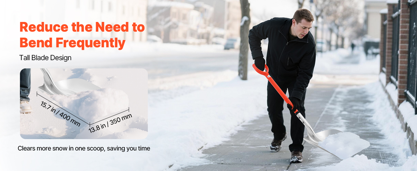 Lopata na sneh na príjazdovú cestu má robustnú hlavu z hliníkovej zliatiny odolnú voči chladu, ktorá je odolná voči praskaniu. Vďaka 15,7-palcovej vysokej čepeli dokáže naraz odstrániť viac snehu, čím sa zníži frekvencia prevádzky. Ideálny na zimné búrky a rýchle odpratávanie snehu, zvyšuje bezpečnosť cestovania a účinnosť odpratávania snehu.
