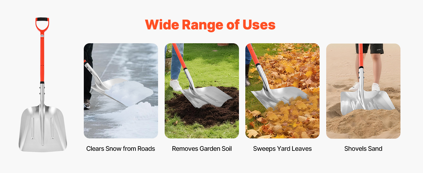 Táto lopata na sneh pre seniorov sa môže používať na čistenie snehu, upratovanie popadaného lístia, záhradnícke práce a zarovnávanie piesku alebo pôdy. Vhodná na rôzne scenáre v domácnosti alebo v exteriéri. Či už na dochádzanie do mesta, do prímestských domov alebo na tábory v prírode, je to nevyhnutný multifunkčný nástroj na celoročné použitie.