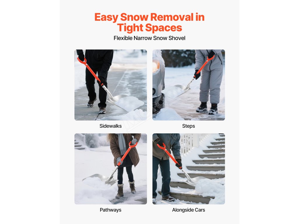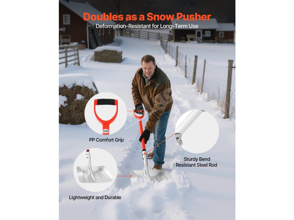 Ľahké lopaty na sneh sú vybavené odolnou rovnou rukoväťou z PVC na stabilné uchopenie bez zamŕzania. Dodáva sa s robustnou hliníkovou čepeľou na hladké odpratávanie snehu a oceľovým hriadeľom so zosilnenou maticou proti uvoľneniu, ktorá zabraňuje zlomeniu hriadeľa a zvyšuje účinnosť čistenia.