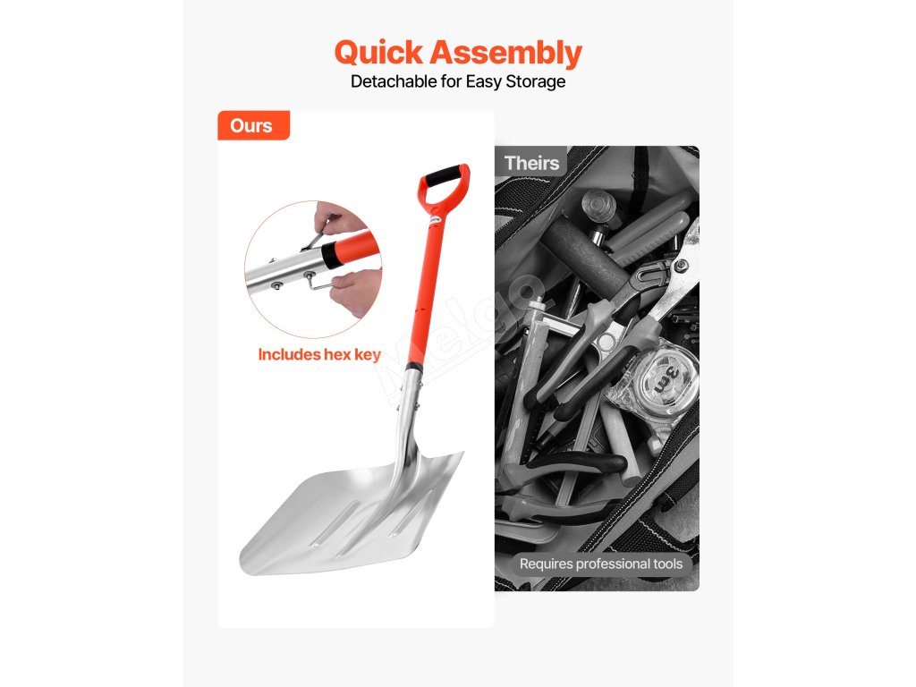 Tieto ľahké lopaty na sneh vážia len 3,68 kg, ktoré sa dajú ľahko prenášať a uložiť do kufra, kôlne na náradie alebo do rohu verandy bez toho, aby zaberali miesto. Pri dochádzaní do práce alebo na cestách ho môžete prevážať spolu s autom a poslúži vám ako prenosný pomocník pri cestovaní v nečakanej snehovej kalamite.