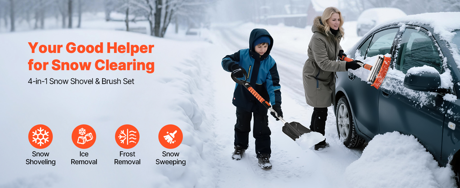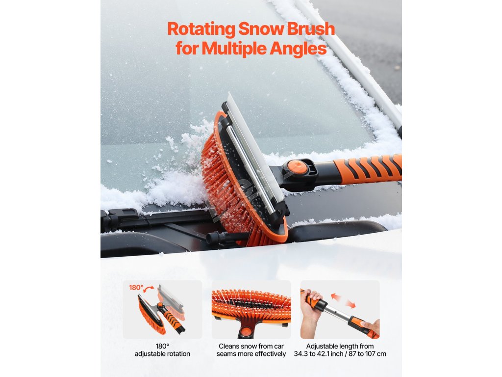 Táto súprava lopaty a kefy na sneh si hravo poradí s ťažkým snehom. Odstraňuje sneh vedľa auta, zametá tenký ľad z okien a jedným ťahom zmetá sneh zo striech. Hlava kefy otočná o 180° sa prispôsobí uhlom vozidla na rýchlejšie a jednoduchšie čistenie, čo je nevyhnutný nástroj na zimné jazdenie.