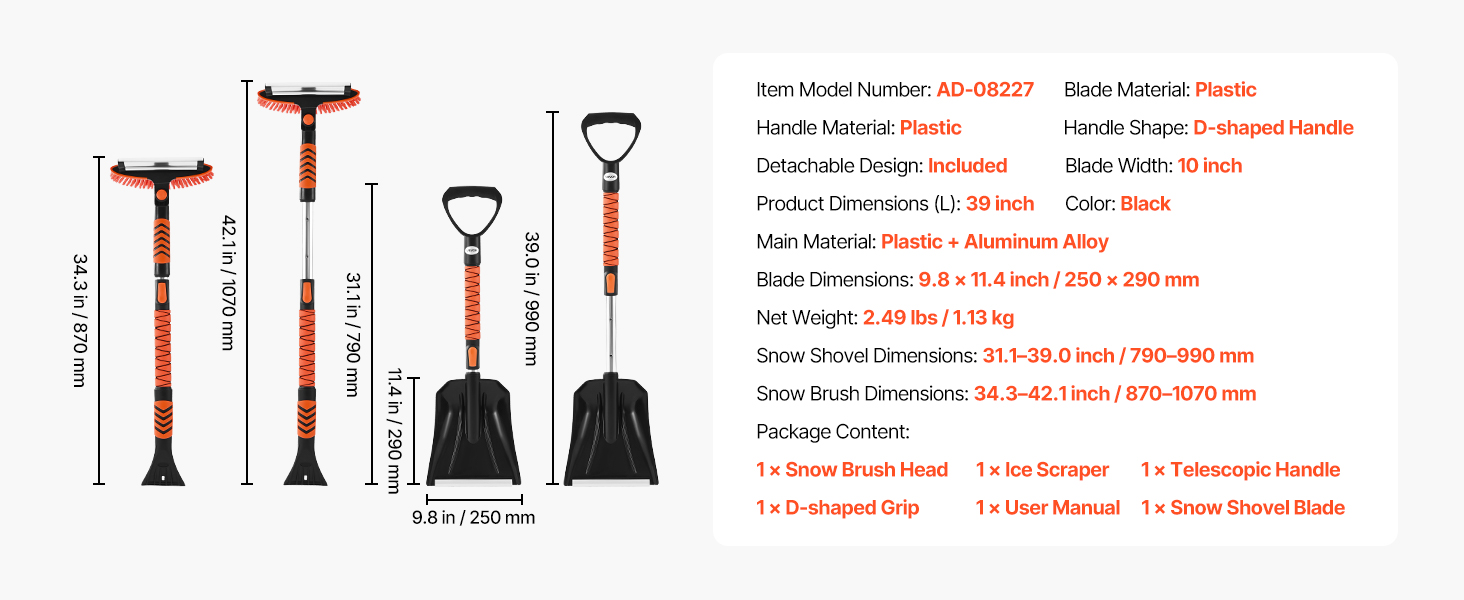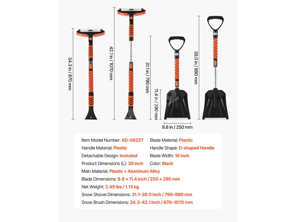 Naša plastová lopata na sneh zvláda viacero zimných úloh, odhŕňa príjazdové cesty, škrabe okná auta, čistí sneh zo striech a odstraňuje škvrny od vody. Je vhodná pre sedany, SUV a nákladné vozidlá, čím vám zabezpečí spoľahlivé zimné cestovanie.