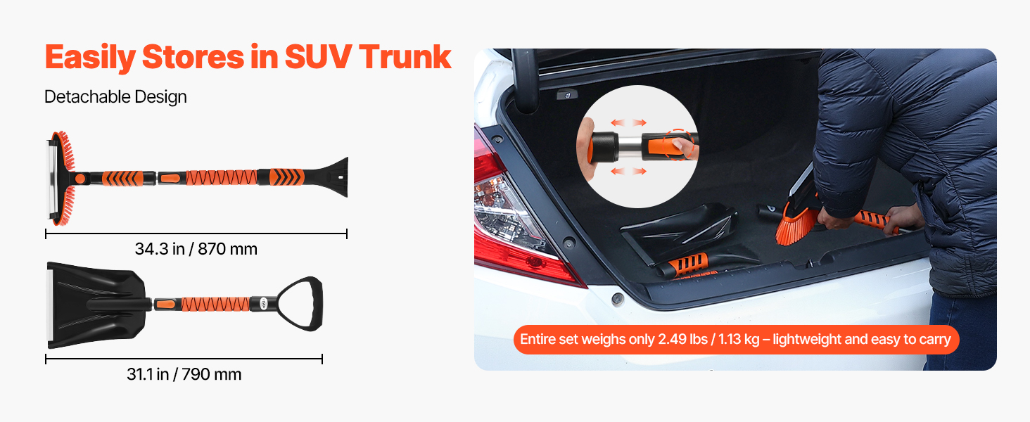 Táto lopata na sneh do auta si osvojila odnímateľnú konštrukciu kefy na sneh a lopaty. Súprava váži len 2,49 libry (1,13 kg), je kompaktná a ľahká, ľahko sa zmestí do kufra, na zadné sedadlo alebo do garáže a je pripravená na každodenné dochádzanie do práce, kempovanie alebo náhle zimné sneženie.