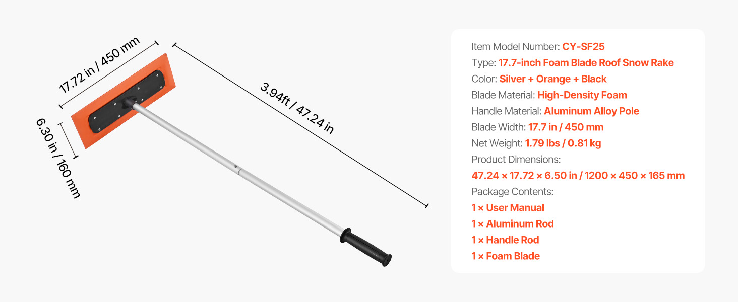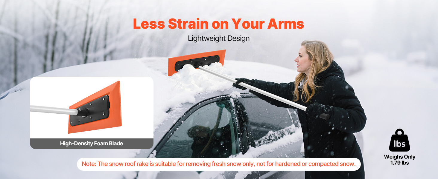 Toto hrablo na sneh na strechu je vybavené čepeľou z vysoko tvrdej a zhustenej peny a rukoväťou z hliníkovej zliatiny pre vysokú pevnosť a odolnosť voči tlaku. Je menej pravdepodobné, že sa pri práci s ťažkým snehom zdeformuje alebo ohne, a poskytuje spoľahlivú oporu pri odstraňovaní snehu.