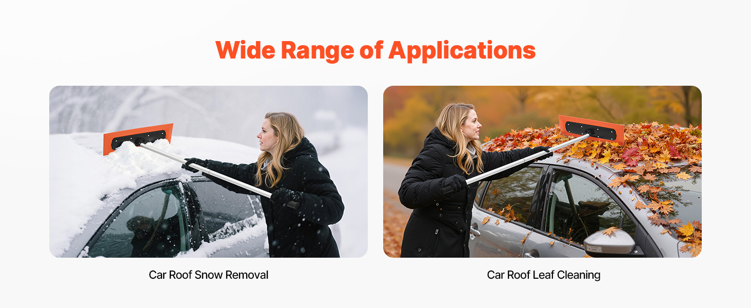Naše strešné hrable sú viacúčelovým nástrojom, ktorý efektívne zvláda rôzne scenáre. Či už ide o sneh alebo opadané lístie na dome, strechy áut, účinne ich vyčistí, vďaka čomu je zimný život bezproblémovejší a uvoľnenejší.